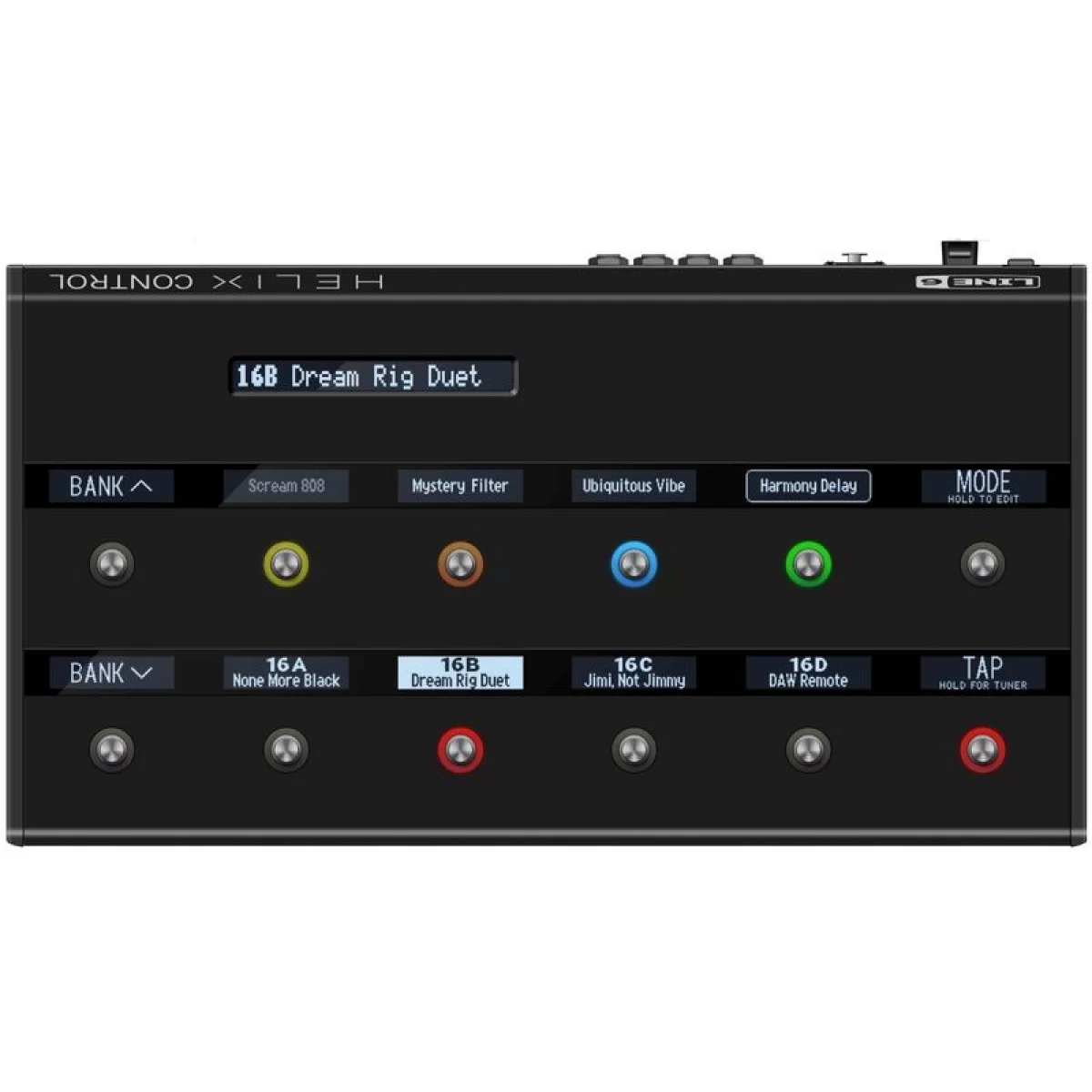 LINE 6 Helix Control - прибор, позволяющий совместить несовместимое — игру на инструменте и редактирование. Специальный режим Pedal Edit позволяет редактировать любые параметры с помощью ноги — достаточно выбрать нужный блок эффектов, чтобы все параметры были перенесены на ножные переключатели. Просто выберите параметр и отредактируйте значение с помощью педали экспрессии!