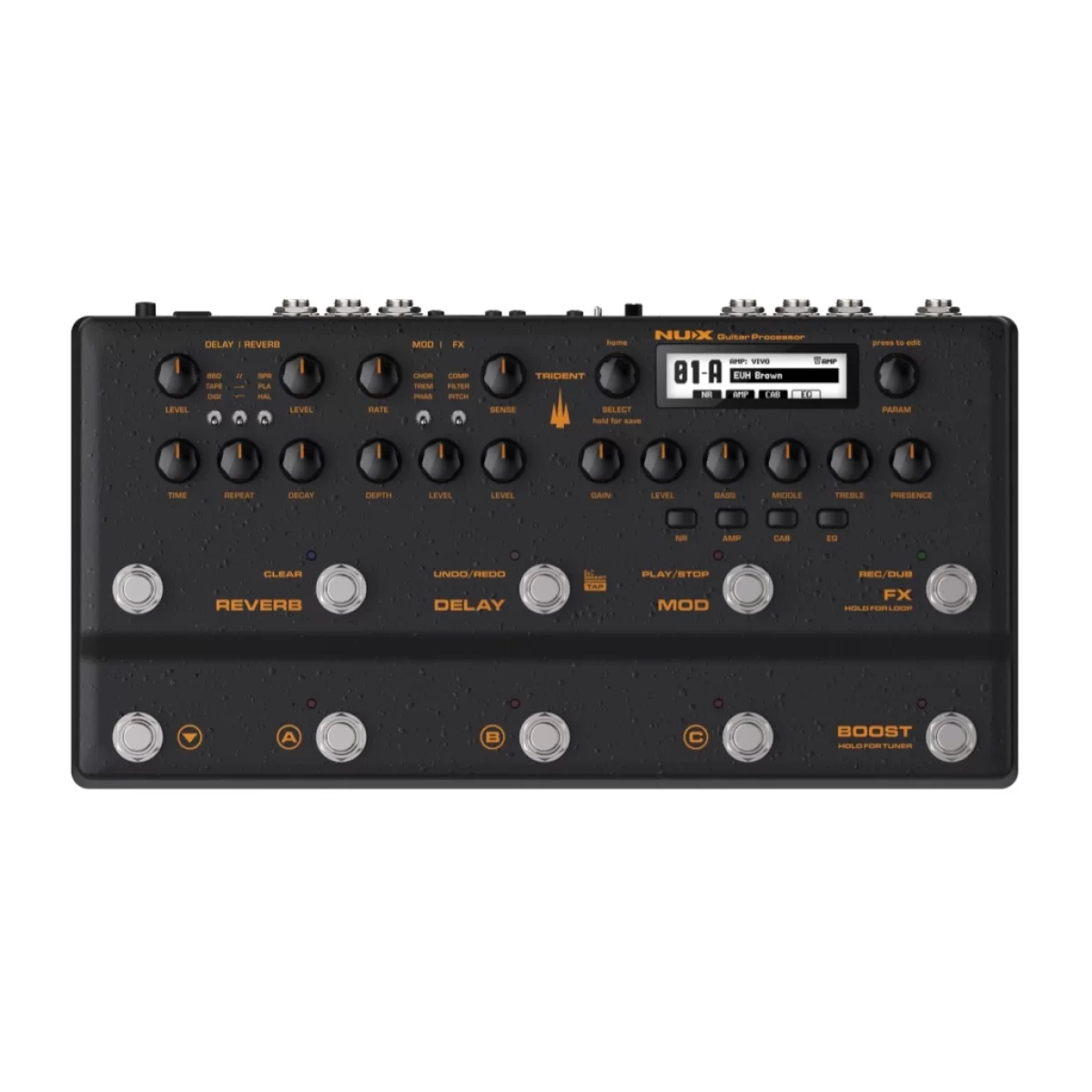 Расположение ручек, тумблеров и ножных переключателей Trident похожи на педали, вы можете свободно включать/отключать эффекты. Энкодеры SELECT & PARAM с ЖК-дисплеем предоставляют более подробную информацию о параметрах, порядке/статусе блоков.