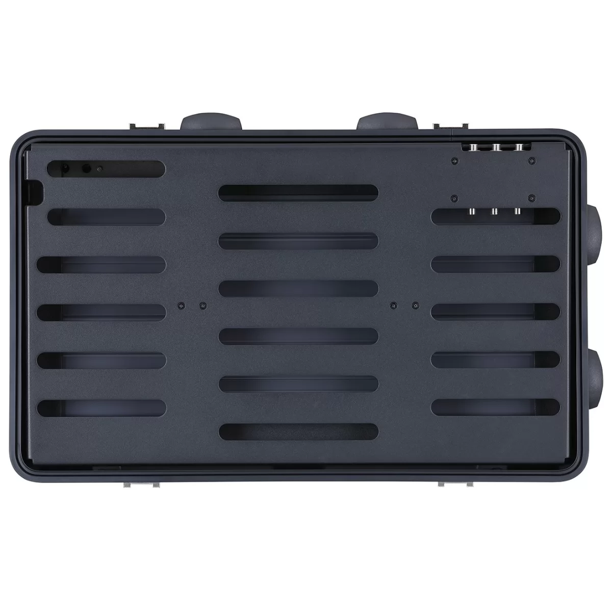 Передовой педалборд BCB-1000 обеспечивает простоту транспортировки, свойственную ручной клади. Выполненная на заказ литая конструкция отличается как высокой прочностью, так и малым весом, а наличие ручек сверху и сбоку, а также выдвижной и колес гарантируют, что педалборд хлопот в пути вам не доставит. Четыре специальные замка крышки надежно фиксирую ее во время транспортировки педалборда и легко раскрываются, когда настанет время играть. В крышке предусмотрена прокладка, обеспечивающая дополнительную защиту педалей при транспортировке.