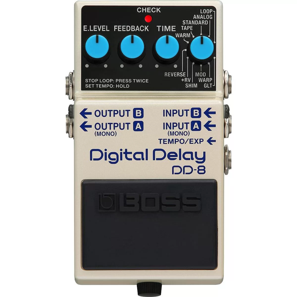 BOSS DD-8 – Это педаль эффекта дилей для электрогитары, представляющая собой новую версию компактных моделей серии DD (Digital Delay).