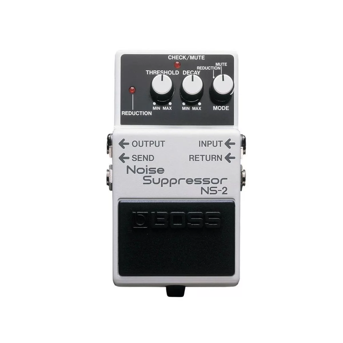 BOSS NS-2 предлагает самые последние достижения в области шумоподавления, не обрезая ноты и не уменьшая сустейн. Подключение NS-2 происходит в цепочку гитарных педалей эффектов после основных педалей дисторшна, хоруса, фэйзера и других «шумных» эффектов, но перед педалями дилэя и реверберации. После этого нужно медленно вращать ручку THRESHOLD до тех пор, пока не исчезнет слышимый шум, подстраивая эффект ручкой DECAY. Для контроля «шумодава» есть яркие светодиоды на корпусе, также используется и большая педаль для мгновенного отключения процессора. Третья ручка MODE используется для выбора режима работы: MUTE для полного заглушения звука и REDUCTION для понижения шумов.