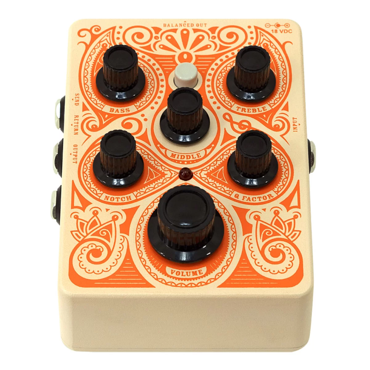 - Элементы управления: Регулировка эквалайзера (НЧ, СЧ, ВЧ), нотч, регулятор Q-фактора, громкость.