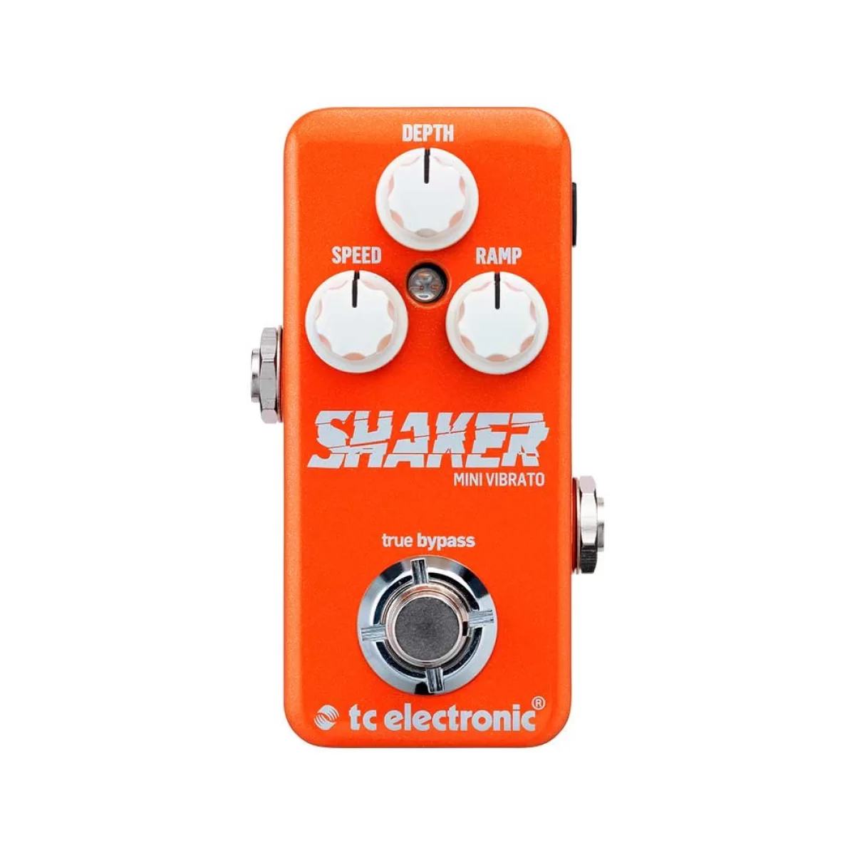 TC Electronic Shaker Mini Vibrato управляется тремя ручками сверху. Ручкой RAMP вы задаете значение времени, в течение которого сигнал проходит путь от чистого до полностью обработанного, DEPTH управляет интенсивностью эффекта, а SPEED контролирует его скорость.