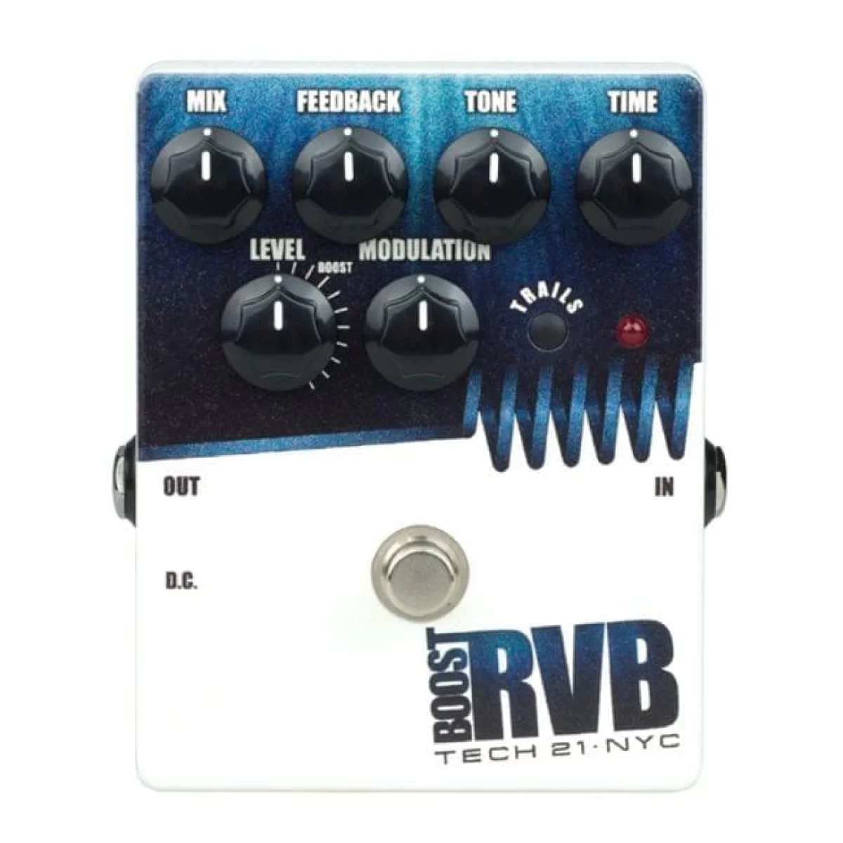 Это вторая версия педали Boost RVB, которая дополнена функцией Trails, которая, работа совместно с "байпассом", обеспечивает плавное выключение эффекта и угасание сигнала.
