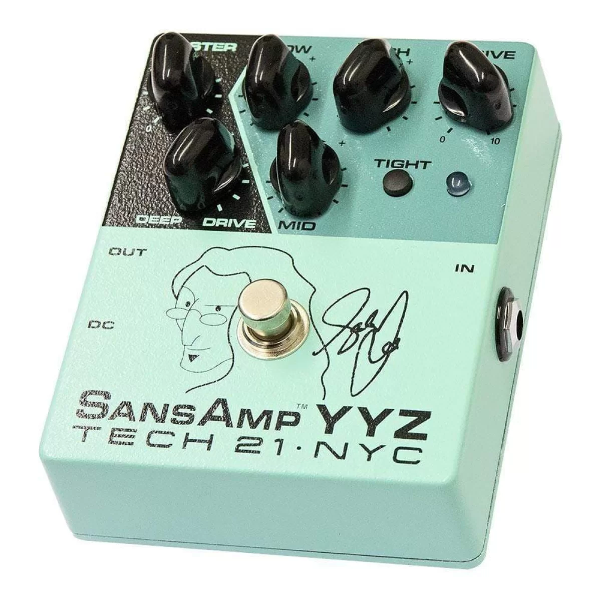 TECH 21 YYZ - Подписной (Geddy Lee) басовый преамп: полностью аналоговый SansAmp; управление миксом смешивания тонов; кнопка для более резкого искажения тона, Drive; активный 3-полосный эквалайзер