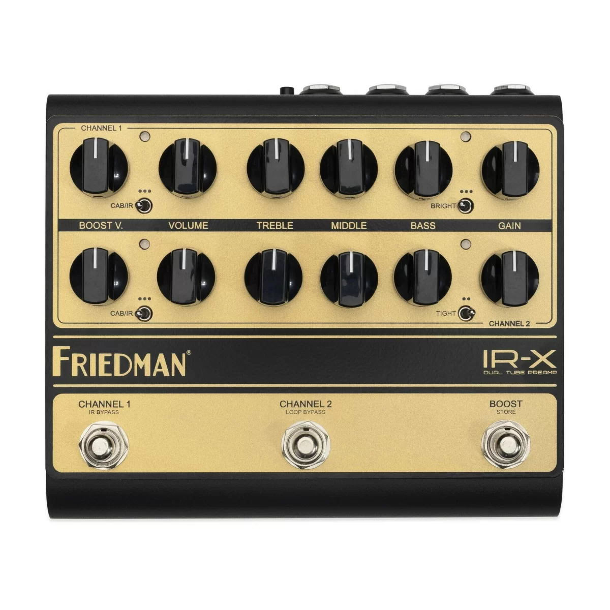 IR-X это настоящий предусилитель во всех отношениях. IR-X обеспечивает тот тон, отклик, характеристики усиления и гармоническую сложность, которые вы ожидаете от Friedman. IR-X не имитирует ламповый предусилитель Friedman. Это он и есть. Оба канала оснащены собственными независимыми и легко настраиваемыми схемами усиления. По сути, это дает вам четыре канала, доступные одним нажатием ноги.