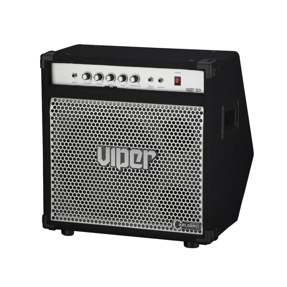 VIPER 30 с силовой ступенью мощностью 30 Вт поразит вас своим мощным ударом. Ни один камень не был оставлен без внимания, чтобы дать вам компактную басовую комбинацию, которая призвана дать вам наилучшие результаты. Его предусилитель оснащен 3-полосным эквалайзером. Решительный и специально озвученный басовый динамик Carlsbro Powertone 10 ”с легкостью воспроизводит низкие басы. Коммутационный отсек включает вход для MP3 / CD-плеера и выход для наушников. Стильная противоударная металлическая решетка и крутые углы обеспечивают всю необходимую защиту.