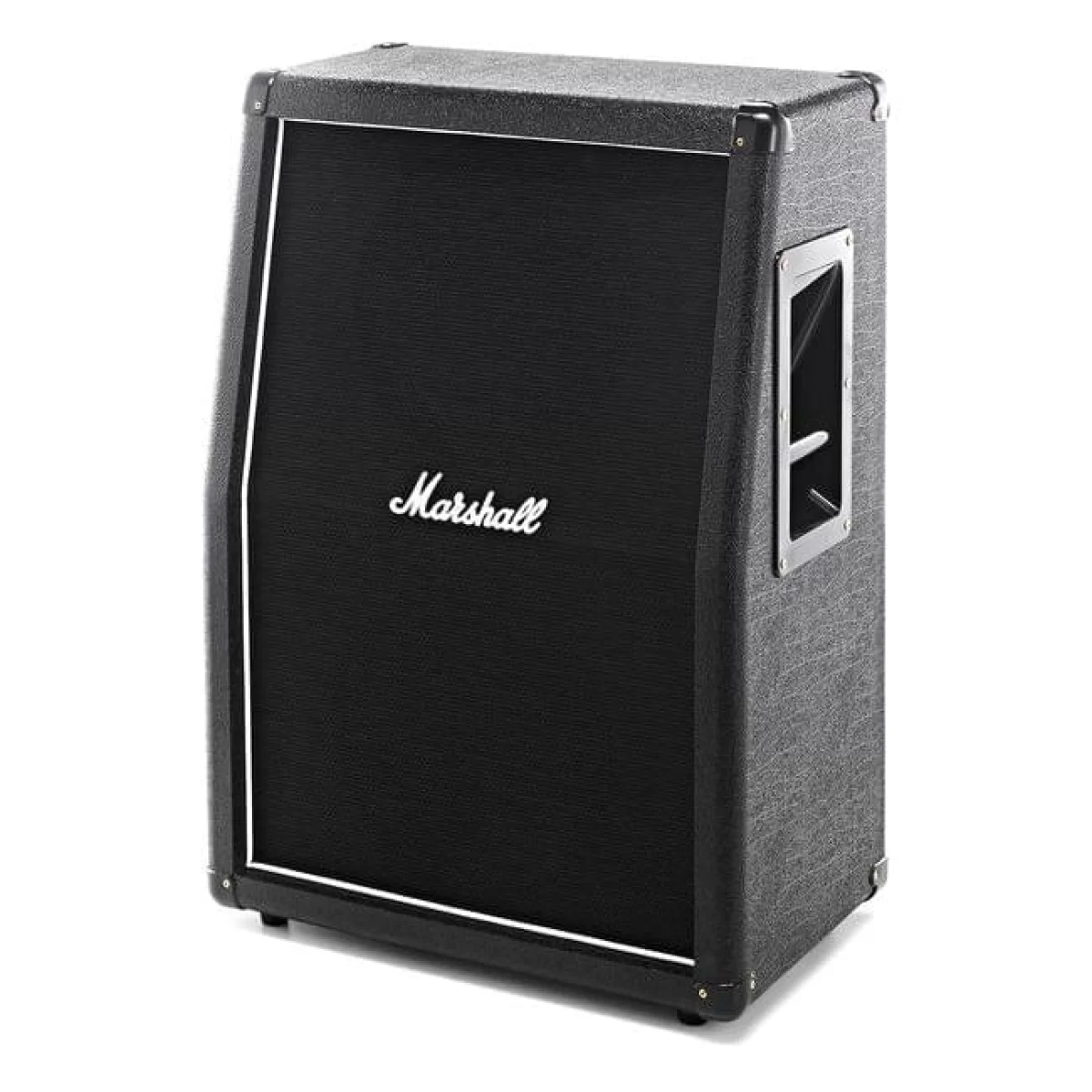 Корпус Marshall MX212A изготовлен из высококачественных плит МДФ, сборка происходит в ручном режиме. МДФ отлично передает естественное звучание гитарных динамиков, имеет хорошие акустические свойства и достаточно прочен, что важно при использовании на гастролях. Акустический кабинет – вертикальный, закрытого типа, со скошенной передней панелью, что позволяет расширить дисперсию звука. Благодаря такой конструкции хорошо формируется плотное звучание электрогитары, а благодаря прочным транспортировочным ручкам по бокам его легко переносить. Снаружи кабинета имеет отделку фирменным винилом Marshall Tolex. Углы защищены специальными металлическими уголками.