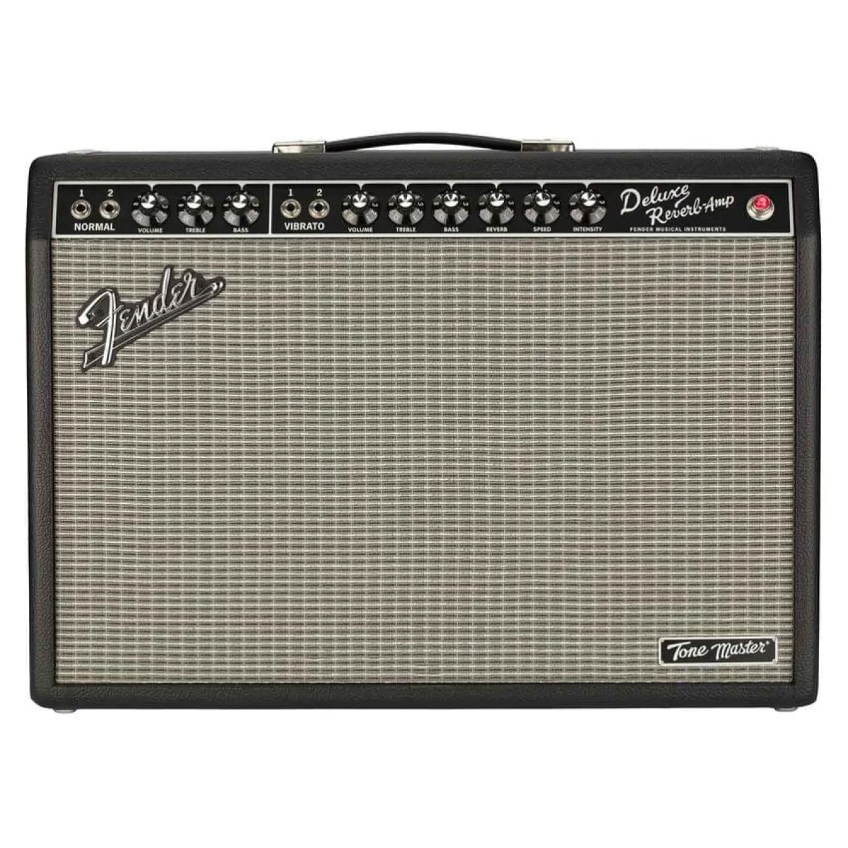 FenderFender Tone Master Deluxe Reverb - Представляет собой цифровой комбоусилитель, достоверно моделирующий оригинальный 22-ваттный ламповый Deluxe Reverb. 100-ваттный цифровой усилитель нового комбика позволяет добиться хедрума и динамического диапазона винтажного лампового усилителя, а динамик Jensen N-12К с неодимовым магнитом и легкий резонирующий корпус из сосны помогают без ламп получить звук, неотличимый от оригинального, при этом весит новый комбоусилитель вдвое меньше знаменитой модели.