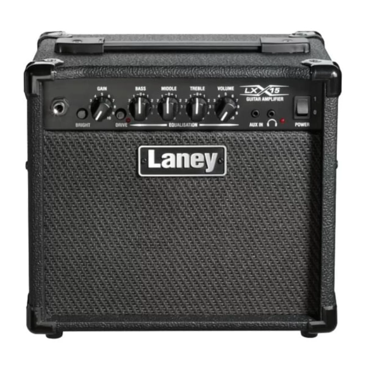Laney LX15 - Гитарный комбо 15 Вт, динамик 2х5'' Custom Drivers, одноканальный с 3-х полосным эквалайзером и дисторшн, CD/MP3 вход, выход на наушники, размеры 310х281х215 мм, вес 6,5 кг, цвет Black.
