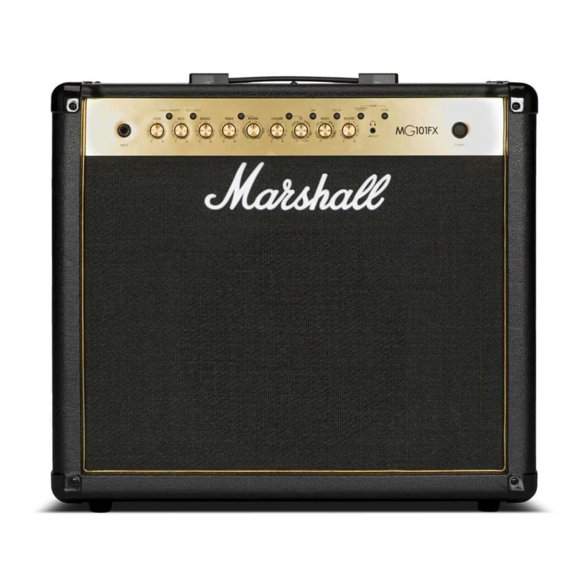 Marshall MG101GFX обладает четырьмя каналами на выбор: чистое усиление Clean, обработка перегрузом Overdrive 1 и Overdrive 2, и, наконец, канал Crunch. Выбор каналов производится при помощи регуляторов на передней панели или комплектного футсвитча PEDL-90010. Присутствует вход на 3,5 мм mini-Jack для подключения внешнего аудиоплеера или смартфона и параллельного воспроизведения, а также выход на наушники на том же разъеме. На тыловой панели есть вход и выход для внешнего процессора эффектов (посыл/возврат), а также линейный выход на внешний громкоговоритель. Кабинет выполнен из МДФ с отделкой винилопластиком с углеволоконным покрытием.