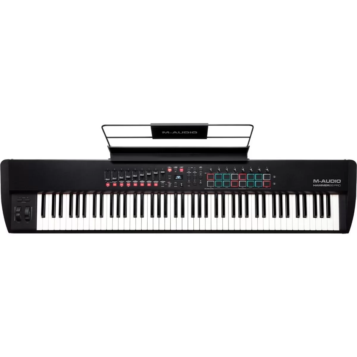 M-Audio Hammer 88 Pro — MIDI-контроллер с градуированной молоточковой клавиатурой на 88 полноразмерных клавиш. OLED-дисплей облегчает поиск и предпрослушивание звуков, назначение контроллеров, а также микширование и редактирование сессии.