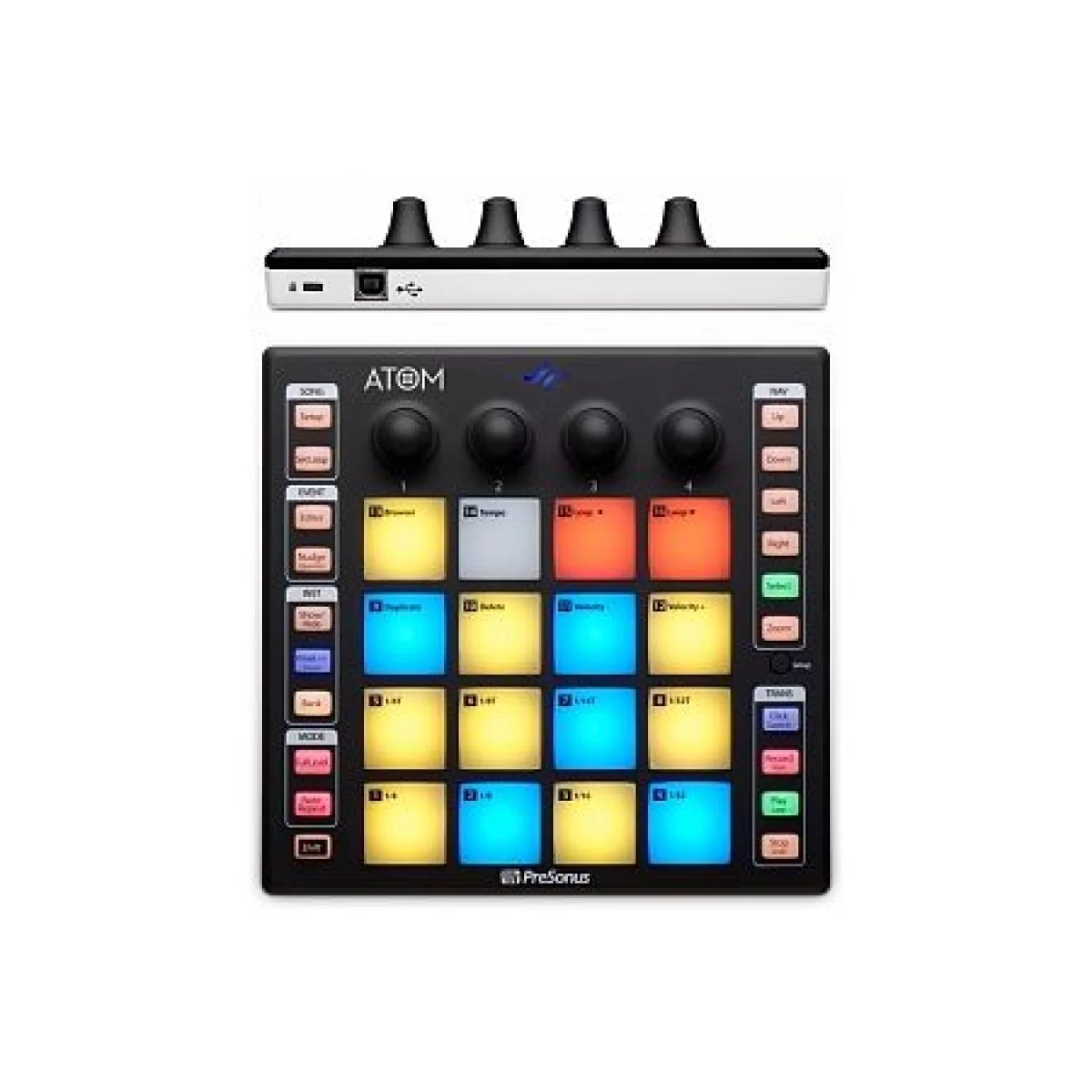 PreSonus ATOM – Это портативный MIDI-контроллер, подходящий как для студийной работы и процессов написания, записи и сведения музыкальных композиций, так и для живых выступлений, в которые данный прибор способен привнести новые краски и возможности. Контроллер совместим практически со всеми виртуальными инструментами и цифровыми рабочими станциями (DAW), а с такими программами как PreSonus Studio One и Ableton Live поддерживается наиболее глубокая совместимость.