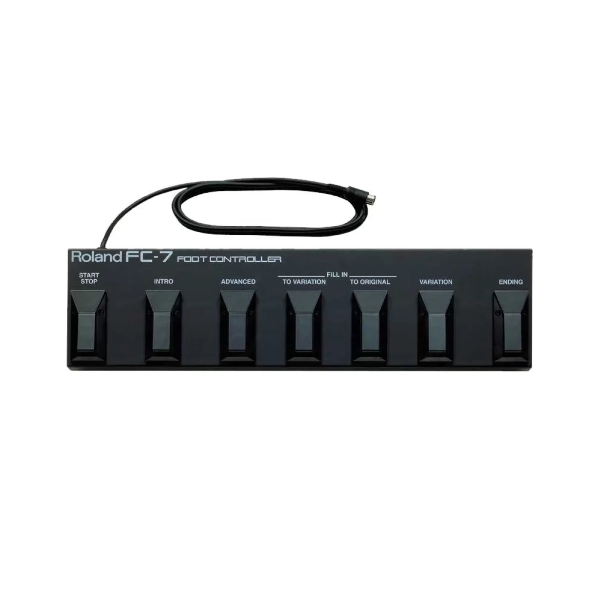 Roland FC-7 обладает следующими функциями: Basic/Advance, Fill-in to Variation, Original/Variation, Start/Stop, Fill-in to Original Intro и функцией Ending. Он снабжен 7 качественными клавишами-переключателями, расположенными в прочном, металлическом корпусе для контроля над функциями прямо в процессе игры: START-STOP запускает/останавливает музыкальный аккомпанемент, INTRO быстро запускает основную тему вступления музыкального аккомпанемента инструмента, ADVANCED переключает из основного/базового режима музыкального аккомпанемента в расширенный режим и обратно, TO VARIATION активирует режим «брейк» с переходом темы музыкального аккомпанемента в режим «B», TO ORIGINAL быстро активирует режим «брейк» с переходом темы музыкального аккомпанемента в режим «A» (ORIGINAL), VARIATION переключает темы музыкального аккомпанемента в различные режимы музыкальных вариаций, END активирует окончание темы музыкального аккомпанемента.