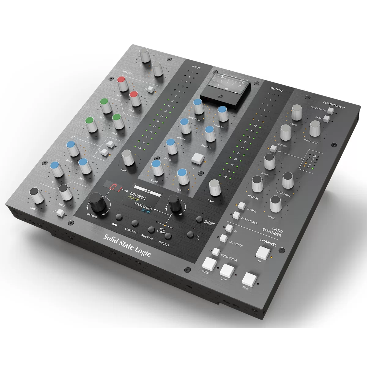 - Подключаемый модуль SSL Mixer (размещенный в SSL 360°) предоставляет место для просмотра полос каналов и компрессоров шины и управления ими с одного экрана