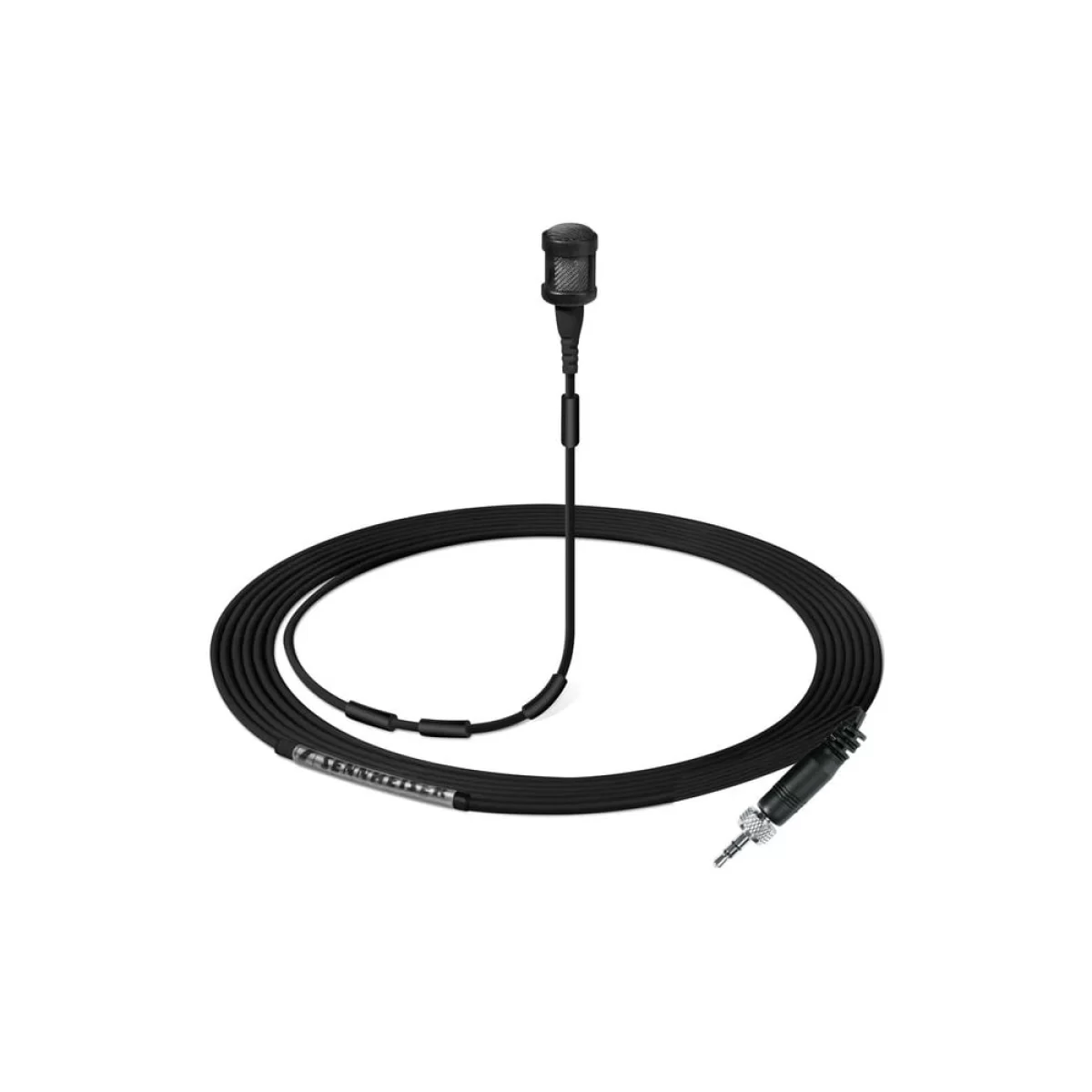 Модель MKE 1-EW Sennheiser - микрофон чёрного цвета, кабель с разъёмом 3,5 мм.