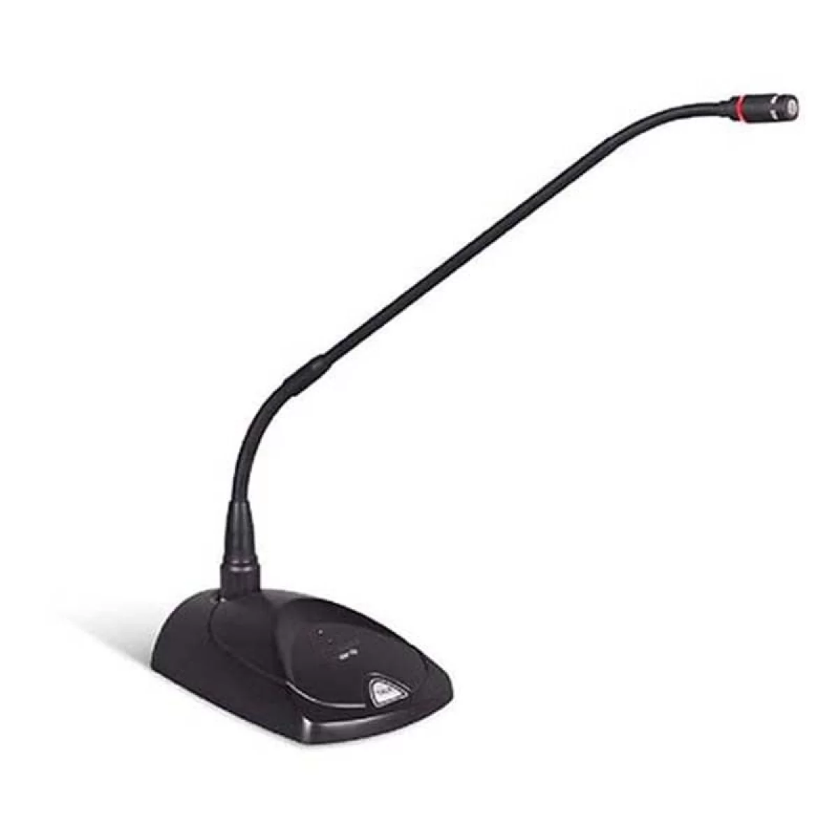 Гибкая «гусиная шея» длиной 420 мм обеспечивает удобство установки и настройки микрофона, а также возможность регулировки его положения относительно источника звука. Микрофон оснащён подставкой для устойчивого размещения на столе.