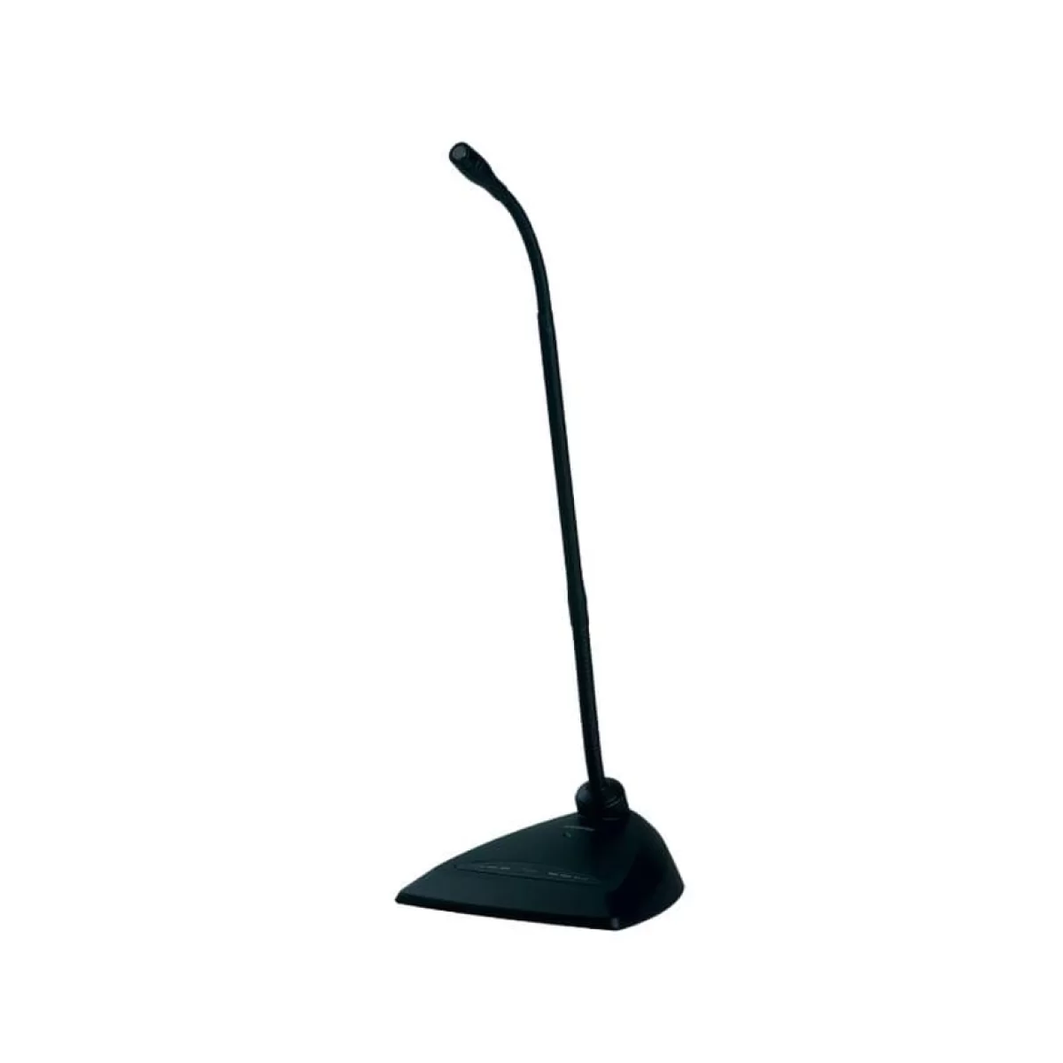 Встроенная электроника позволяет работать от фантомного питания 11-52 В, получаемого от микшера или усилителя, а удобный держатель типа «гусиная шея» длиной 457 мм дает возможность пользователю максимально удобно расположить микрофон. Устанавливается микрофон в настольную базу с встроенным кабелем 3 м. Такая конструкция обеспечит быструю установку и настройку прибора в местах где стационарная установка нецелесообразна. Кроме того прибор оборудован программируемой кнопкой включения/выключения с индикатором и клеммами для удаленного управления.