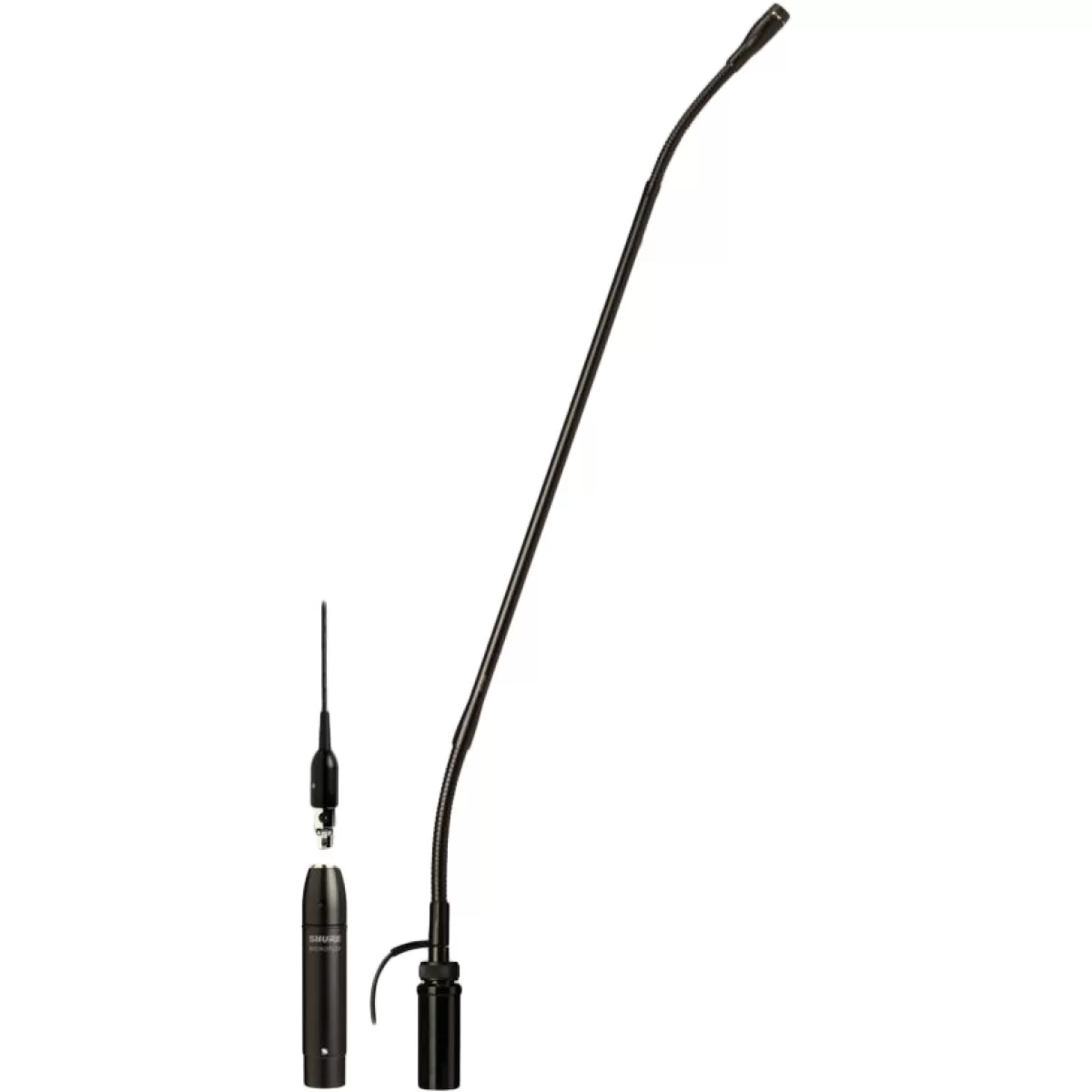 ShureShure MX418SE/S - Настольный конденсаторный микрофон на 18-дюймовом гибком штативе со сменными картриджами, пенопластовым ветрозащитным экраном и фланцевым фиксатором.