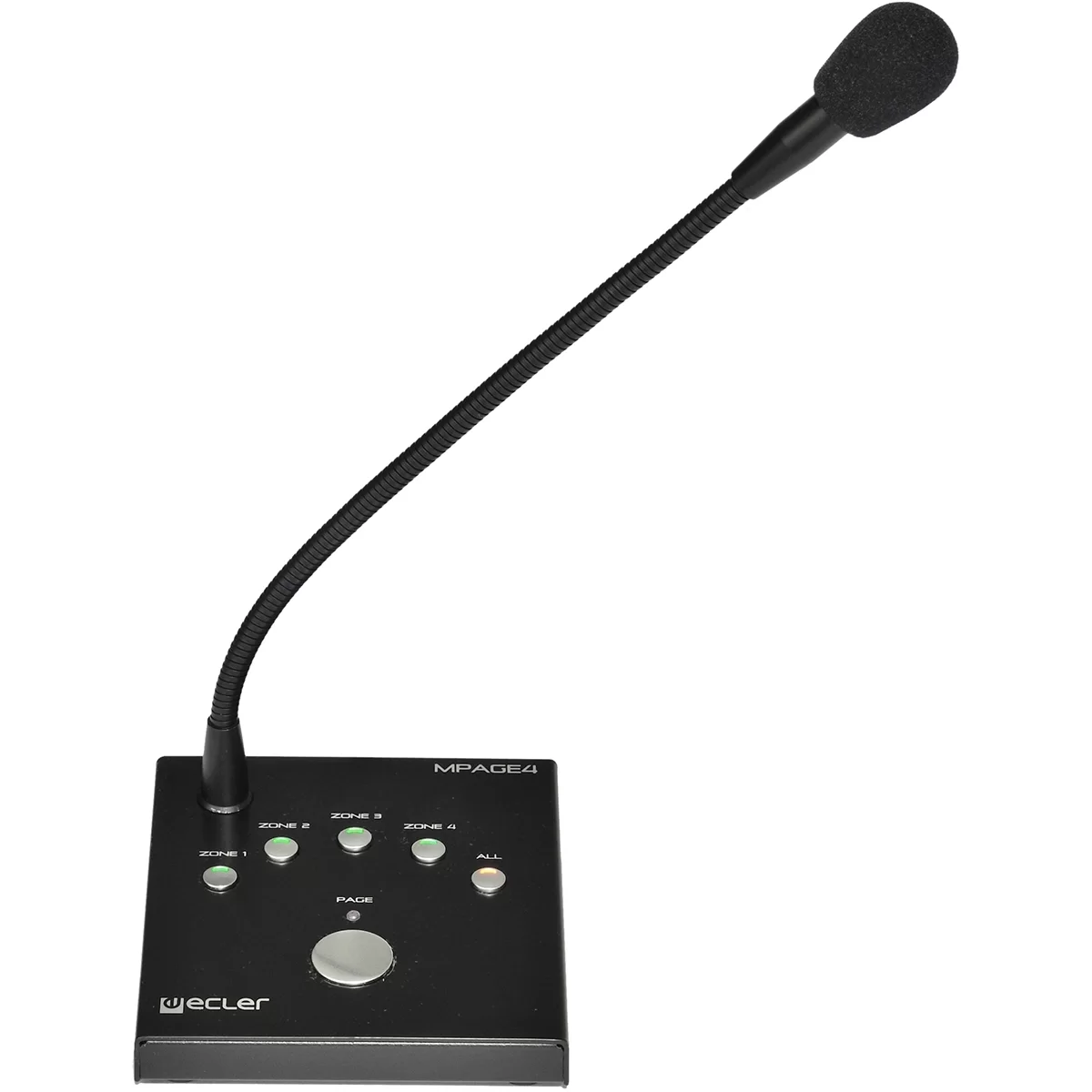 EclerEcler MPAGE4 – Цифровой пейджинговый микрофон для 4 зон с конденсаторным капсюлем и балансным выходом. Используется с матрицами серии DAM614.