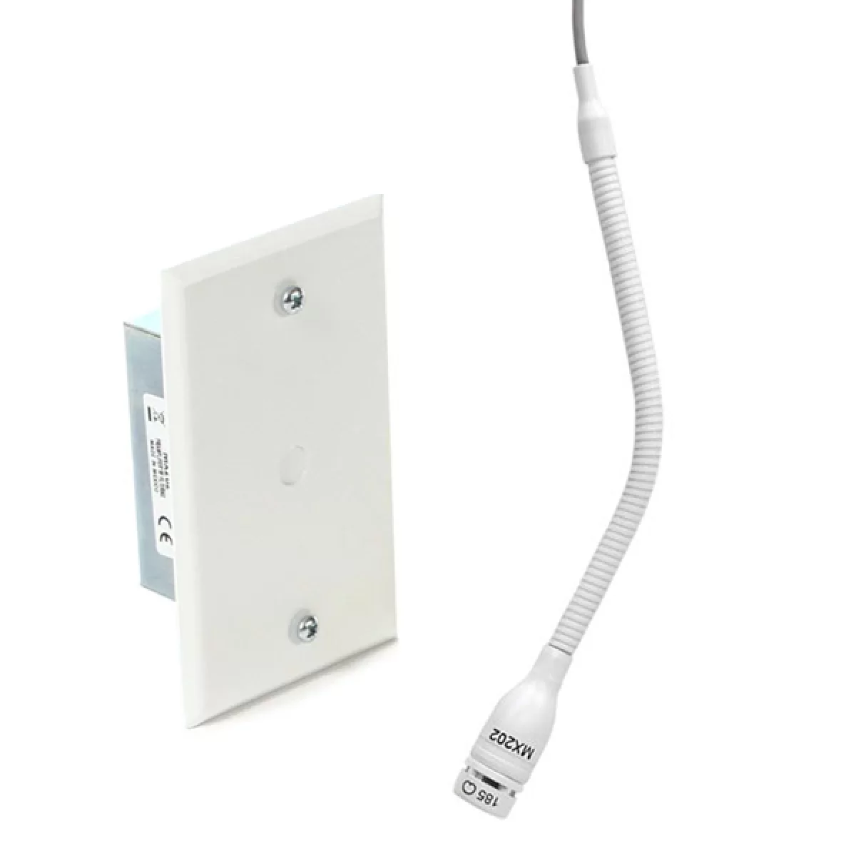- MX202WP/C (Preamplifier Plate): Версия с кардиоидным капсюлем, но вместо стандартного предусилителя на кабеле комплектуется пластиной для монтажа в стандартную потолочную распределительную коробку.