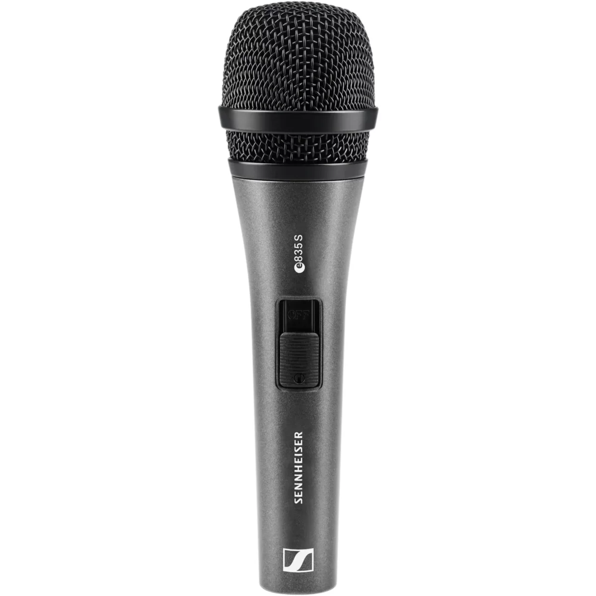 Sennheiser E 835-S является вокальным динамическим кардиоидным микрофоном серии Evolution 800 известного производителя Sennheiser. Он предназначен как для работы вокалистов на сцене и в студии, так и для речей спикеров. Кардиоидная диаграмма направленности даёт хорошее усиление перед возникновением обратной связи, а её равномерный шаблон – превосходный захват звука в узкой области. Микрофон оптимизирован для передачи вокала при использовании в студии и на сцене. Бесшумный переключатель включения/выключения даёт возможность мгновенно глушить звук во время перерывов или выступления без влияния на звуковой тракт. Для подключения используется разъем XLR. Микрофон выполнен в литом металлическом корпусе с высокопрочной решеткой для защиты капсюля. Надежный корпус и внутренняя аттенюация создают экран, препятствующий появлению корпусного шума.