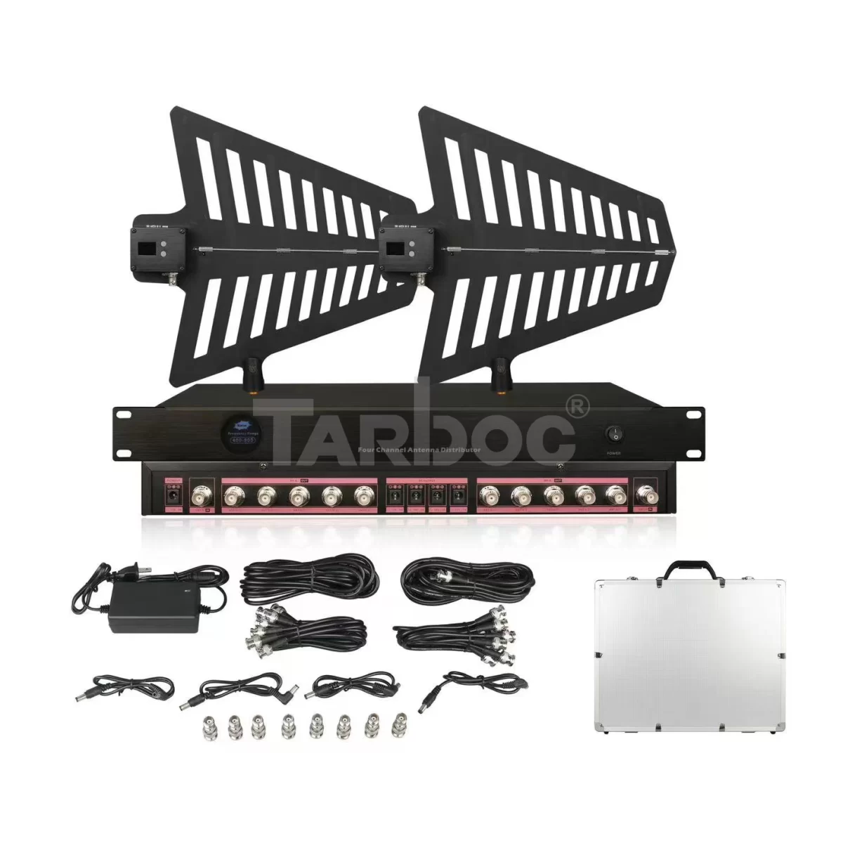К нему можно напрямую подключить комплект удлинительных антенн с антенным бустером и комплект логарифмических направленных антенн со встроенным бустером.