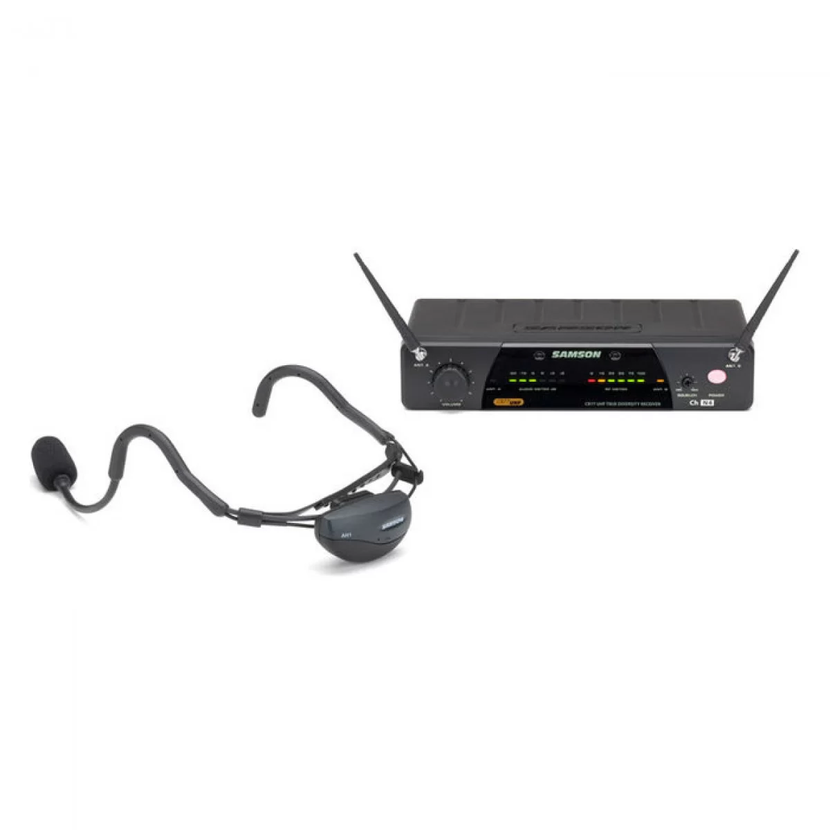 Радиосистемы диапазона UHF (800 - 806 МГц) серии Airline 77 комплектуются передатчиками Airline, собранными по миниатюрной технологии в одном корпусе с микрофонными элементами и потому не требующими отдельной поясной коробки и кабеля.Головные гарнитуры Airline со встроенными передатчиками содержат микрофонные элементы Qe (для аэробики) или Qv (для вокала). Духовые инструменты озвучивает передатчик Airline AH1, соединённый с конденсаторным элементом Samson AMT. Любой из передатчиков работает от батарейки AAA, которой хватает приблизительно на 14 часов работы. Ядро радиосистемы - 2х-антенный приёмник с частотной стабилизацией CR77 размером 1/2 U. На передней панели CR77 находятся светодиодные индикаторы уровня сигнала и частоты, регуляторы Volume и Squelch (для подавления шумов несущей и радиочастотных помех). На задней панели расположены балансные выходы XLR и небалансные выходы 1/4" jack, а также переключатель микрофонного/линейного уровня.