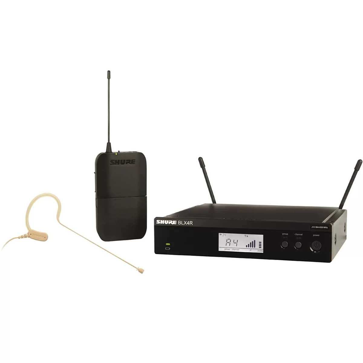 Shure BLX14R/MX53 – Это компактная радиосистема для публичных выступлений. В комплект входят беспроводной приёмник BLX4R и передатчик BLX1 с презентационным микрофоном телесного цвета MX153.