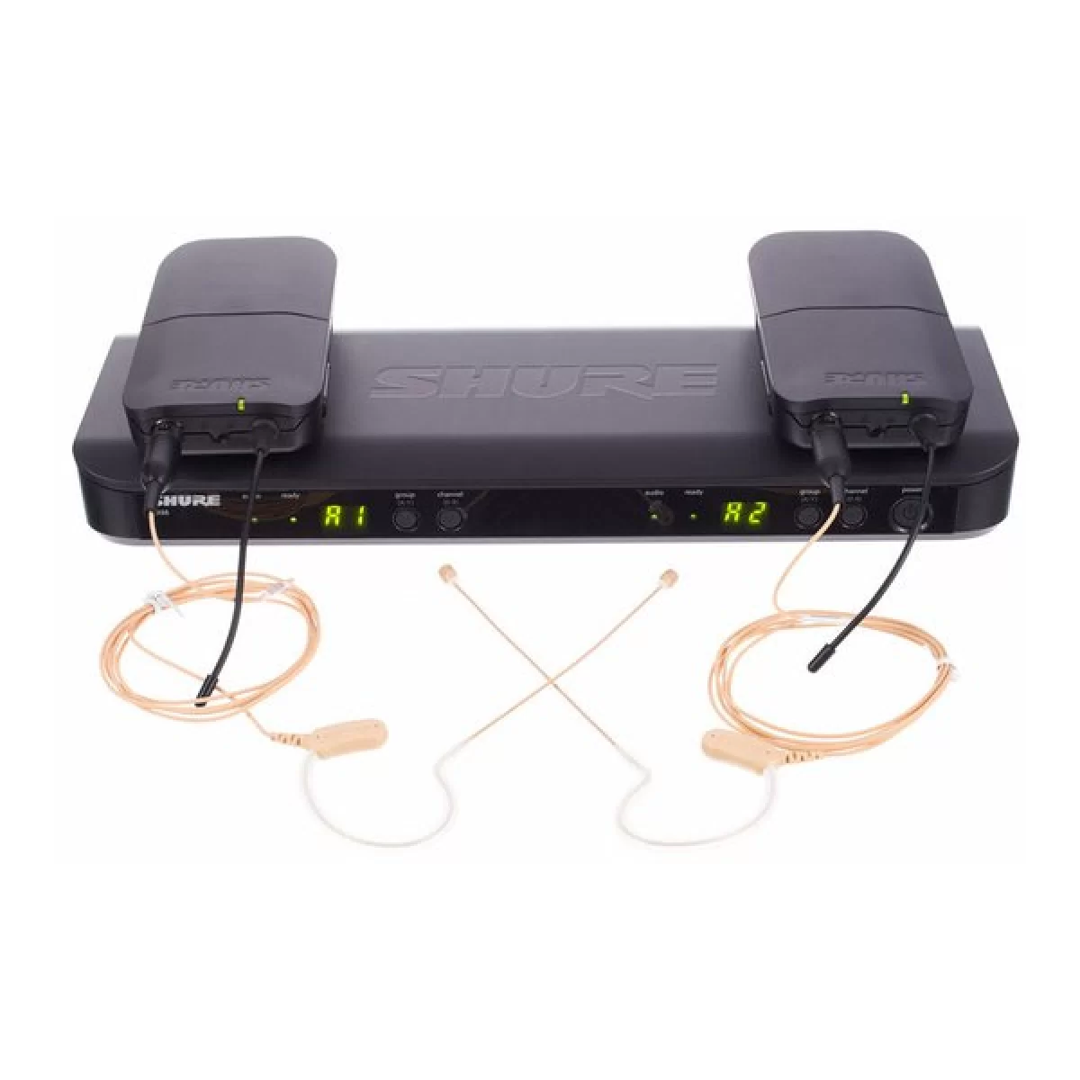 - В наборе двухканальный приемник BLX88, два поясных передатчика BLX 1 и два головных микрофона M153