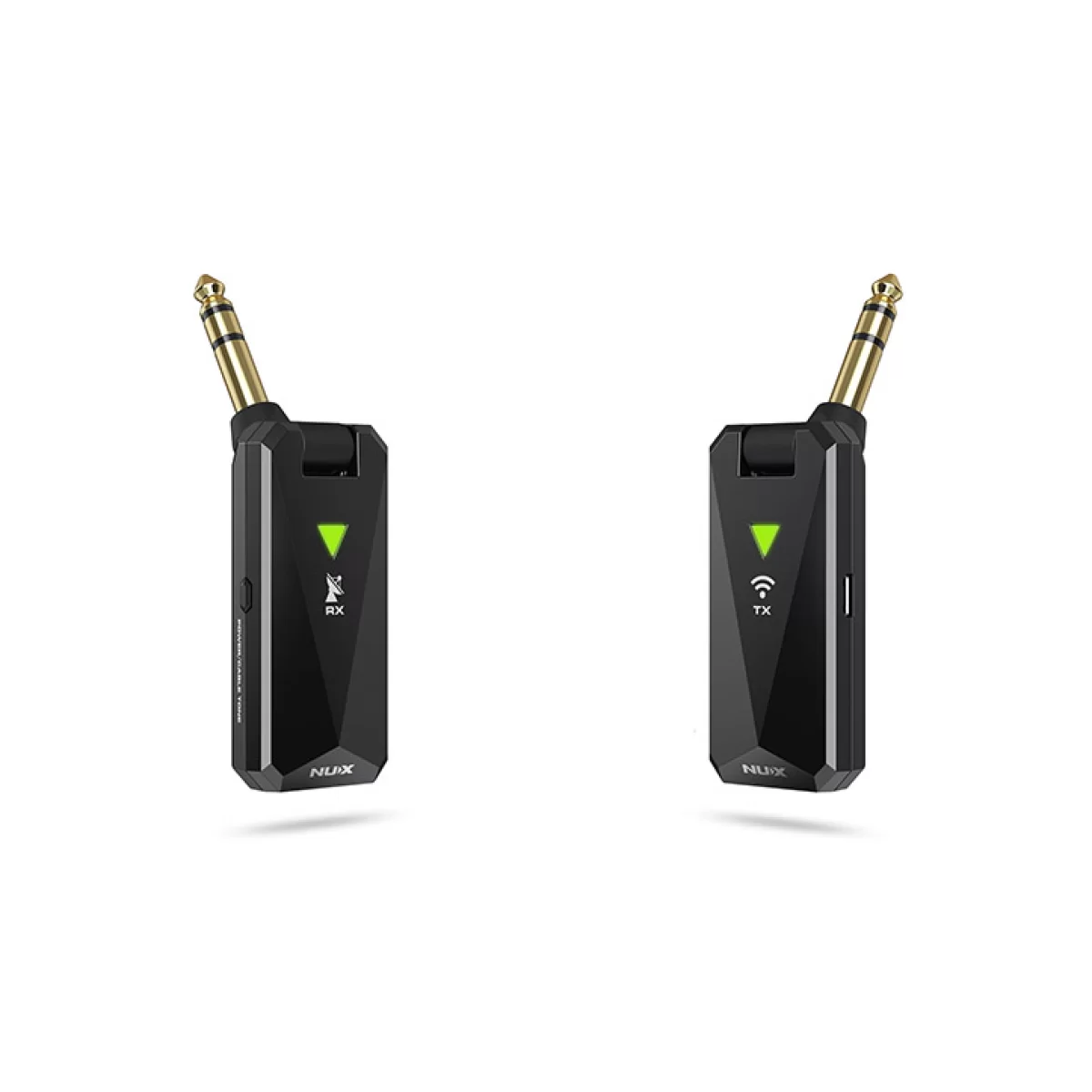 Просто удерживайте кнопку питания, чтобы включить оба устройства, подключите передатчик к вашему инструменту, а приемник к усилителю (или педали, аудиоинтерфейсу и т.д.). Готово к игре!