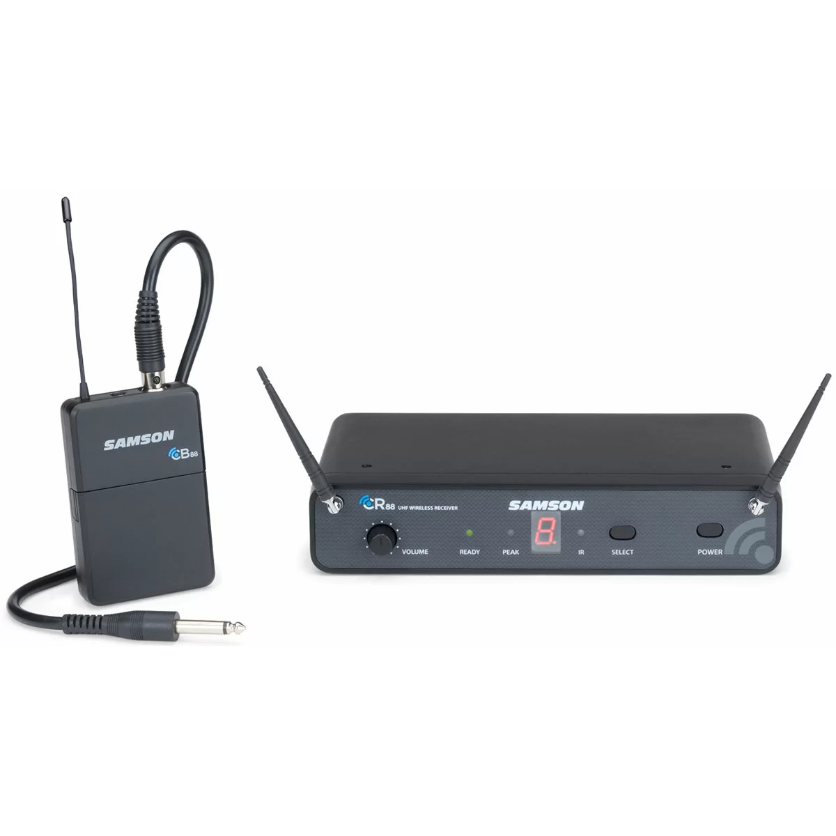 На фронтальной панели приемника CR88 находится клавиша Select, которая позволяет переключать установленные каналы. Синхронизация между приемником и передатчиком происходит посредством инфракрасного порта. Дисплей оснащен 7-ми сегментным модулем который отображает действующий канал. Так же на панели расположен регулятор громкости, выключатель питания, две внешние антенны и индикаторы наличия сигнала между приемником и передатчиком, и перегрузки. Выходные разъемы выполнены на параллельных балансных XLR и 1/4" TRS коннекторах.