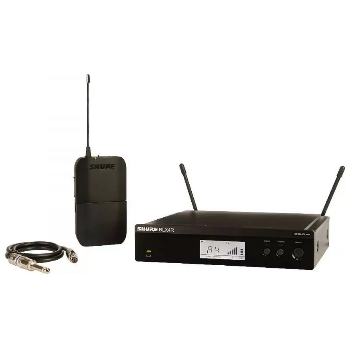 Shure BLX14R – Это компактная беспроводная инструментальная радиосистема для широкого спектра применений. В комплект входит приёмник BLX4R, передатчик BLX1 и инструментальный кабель WA302 с разъемом TA4 на одном конце и штекером 1/4" TS Jack – на другом: таким образом, вам не понадобится докупать ничего сверх, можно использовать систему сразу же.