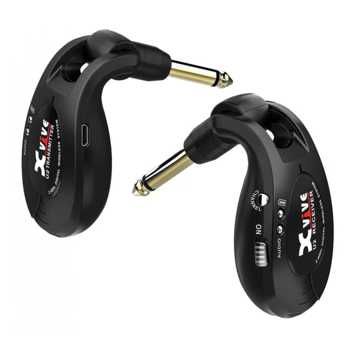 В комплект входят приемник, который можно подключать к гитарным педалям, усилителям и звуковому оборудованию, и передатчик, который подключается напрямую к выходному разъему гитары или бас-гитары. U2 – цифровая радиосистема, которая обеспечивает качество звука студийного уровня с великолепной детализацией, стабильную и надежную работу, простоту и удобство в подключении и использовании. Задержка при передаче - менее 6 мс. Частотный диапазон системы – от 20 Гц до 20 кГц, динамический диапазон – более 103 дБ. XVIVE U2 работает на радиочастотном диапазоне 2,4 КГц, свободном от помех. Питание приемника и передатчика осуществляется от перезаряжаемых литий-ионных аккумуляторов, время непрерывной работы – до 5 часов. Приемник и передатчик отличаются компактными размерами, имеют эргономичную обтекаемую форму. Приемник легко разместить приемник в любом педалборде, а передатчик не будет сковывать движений при игре. Корпуса выполнены из прочного АБС пластика, который способен выдержать самое интенсивное использование на концертах и в турах, неприхотлив к неблагоприятным внешним условиям, в том числе при работе на открытом воздухе. Представленная версия U2 – черного цвета.