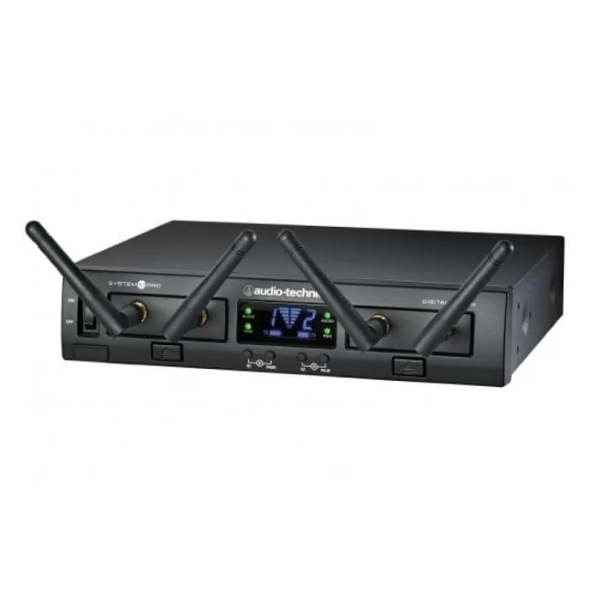 Audio-Technica ATW-R1320 – Двухканальный цифровой приемник серии System 10 PRO, который может функционировать как отдельно, так и будучи помещенным в рэковую стойку, крепления прилагается в комплекте.