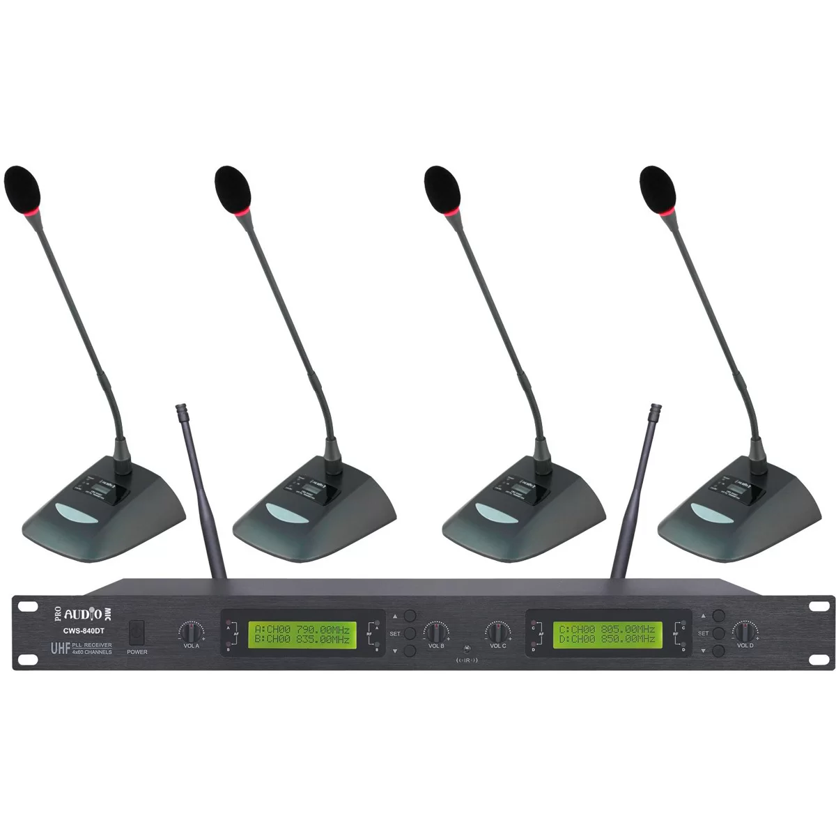 ProAudioProaudio CWS-840DT - Беспроводная радиосистема с четырьмя настольными микрофонами на «гусиной шее».