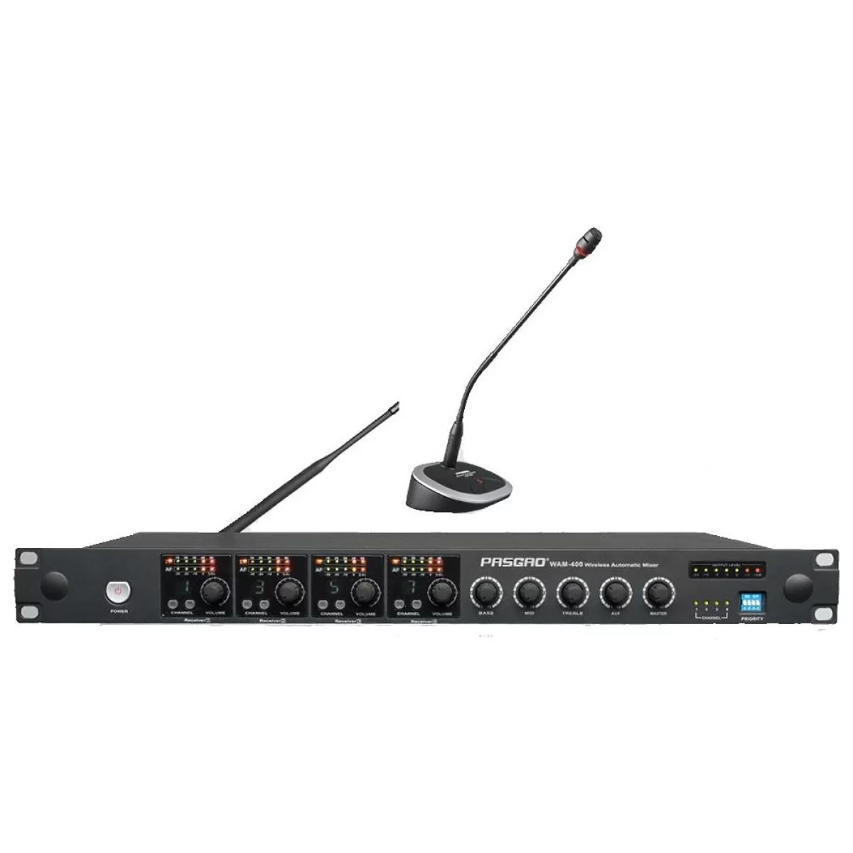 Pasgao WAM400 / PDE40W - Беспроводная радиосистема со встроенным автоматическим микшером, разработанная производителем специально для работы по озвучиванию конференций, тренингов, собраний, лекций и других мероприятий.