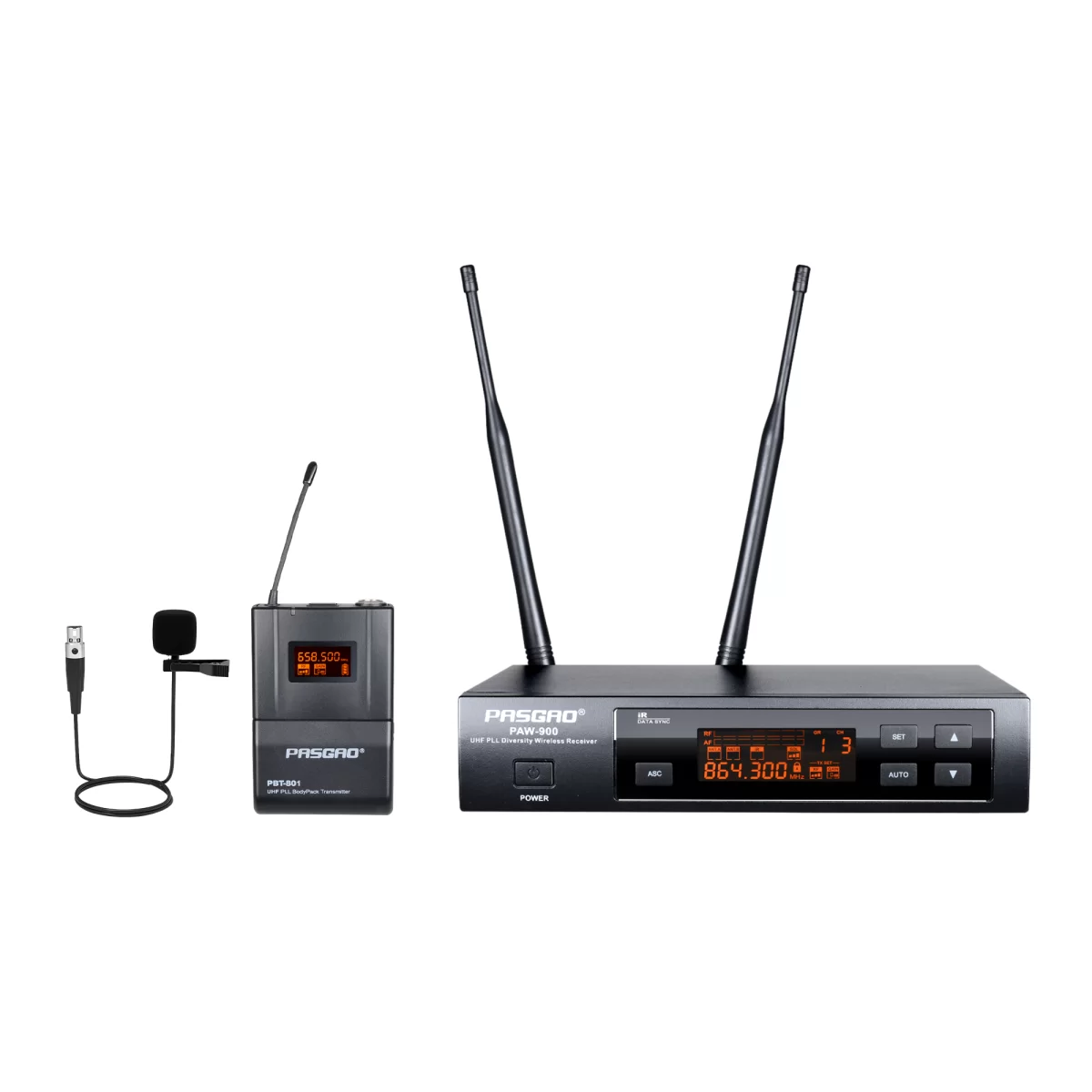 PasgaoPasgao PAW-900/PBT-801 - Радиосистема с петличным и поясным передатчиками