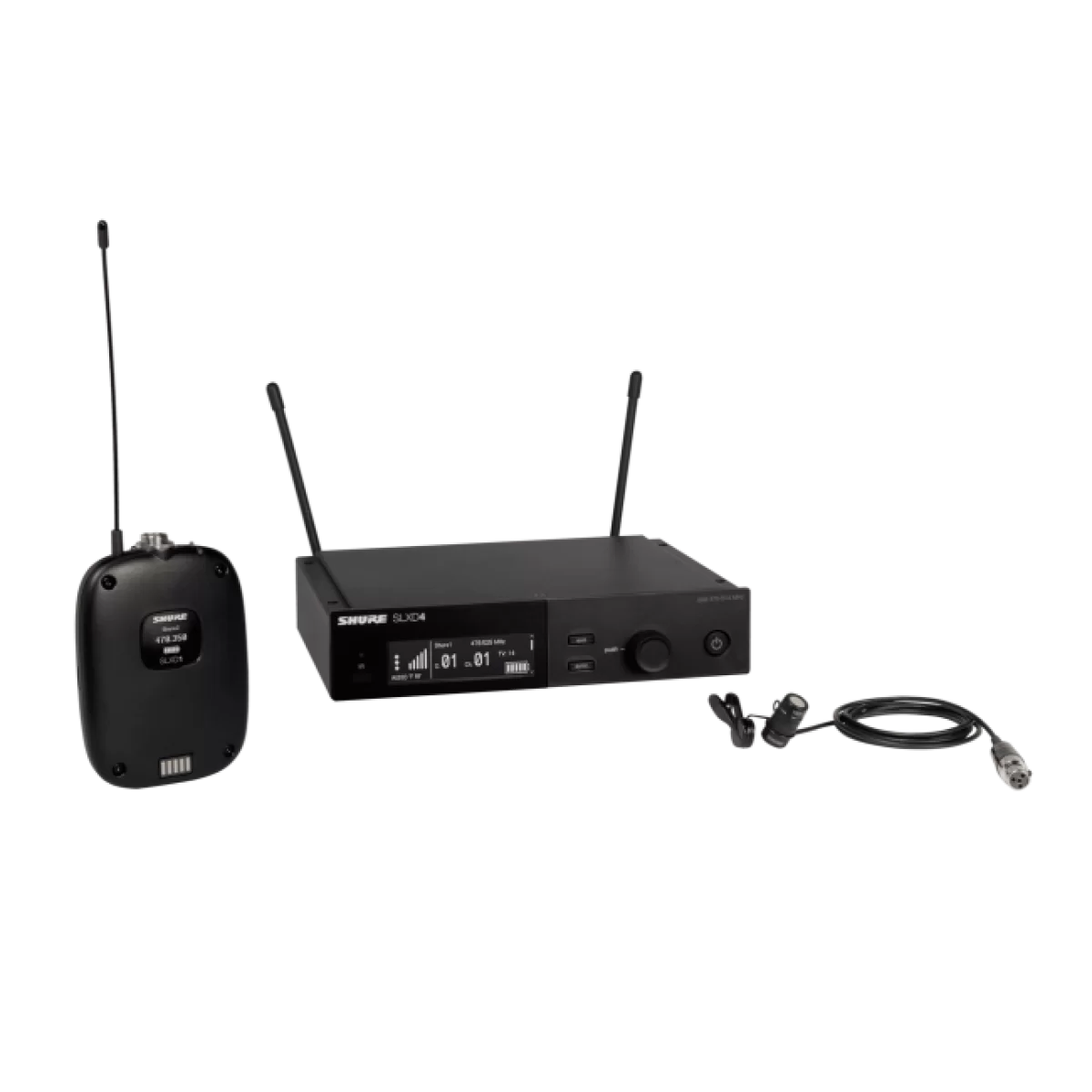 - В наборе приемник SLXD4, поясной передатчик SLXD1 и петличный микрофон WL183