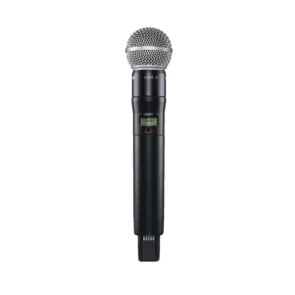 - ADX2 — «Умный» передатчик с ShowLink. Главное отличие серии ADX от AD — встроенная технология ShowLink. Она позволяет звукорежиссеру дистанционно через точку доступа AD610 менять настройки микрофона прямо во время выступления: частоту, усиление (gain), мощность сигнала и другие параметры. Работает только на аккумуляторах Shure (SB910/SB920). При обнаружении помех система может сама незаметно перестроить микрофон на чистую частоту. Версия подходит для сложных живых шоу, где важно контролировать микрофон на расстоянии.