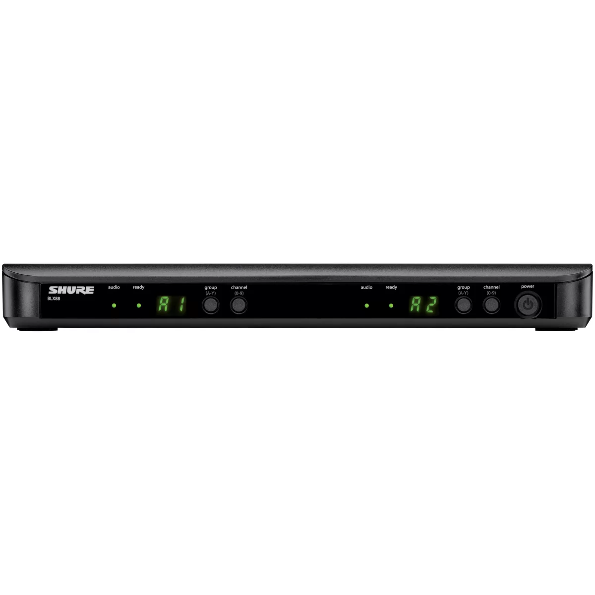 BLX88E оснащен четырьмя выходами: два на разъемах XLR и два – на 1/4" TS Jack. Рабочий диапазон составляет 91 метр. Ресивер настроен для использования с беспроводными системами серии BLX. Модификация M17 работает в диапазоне несущих частот от 662 до 686 МГц.