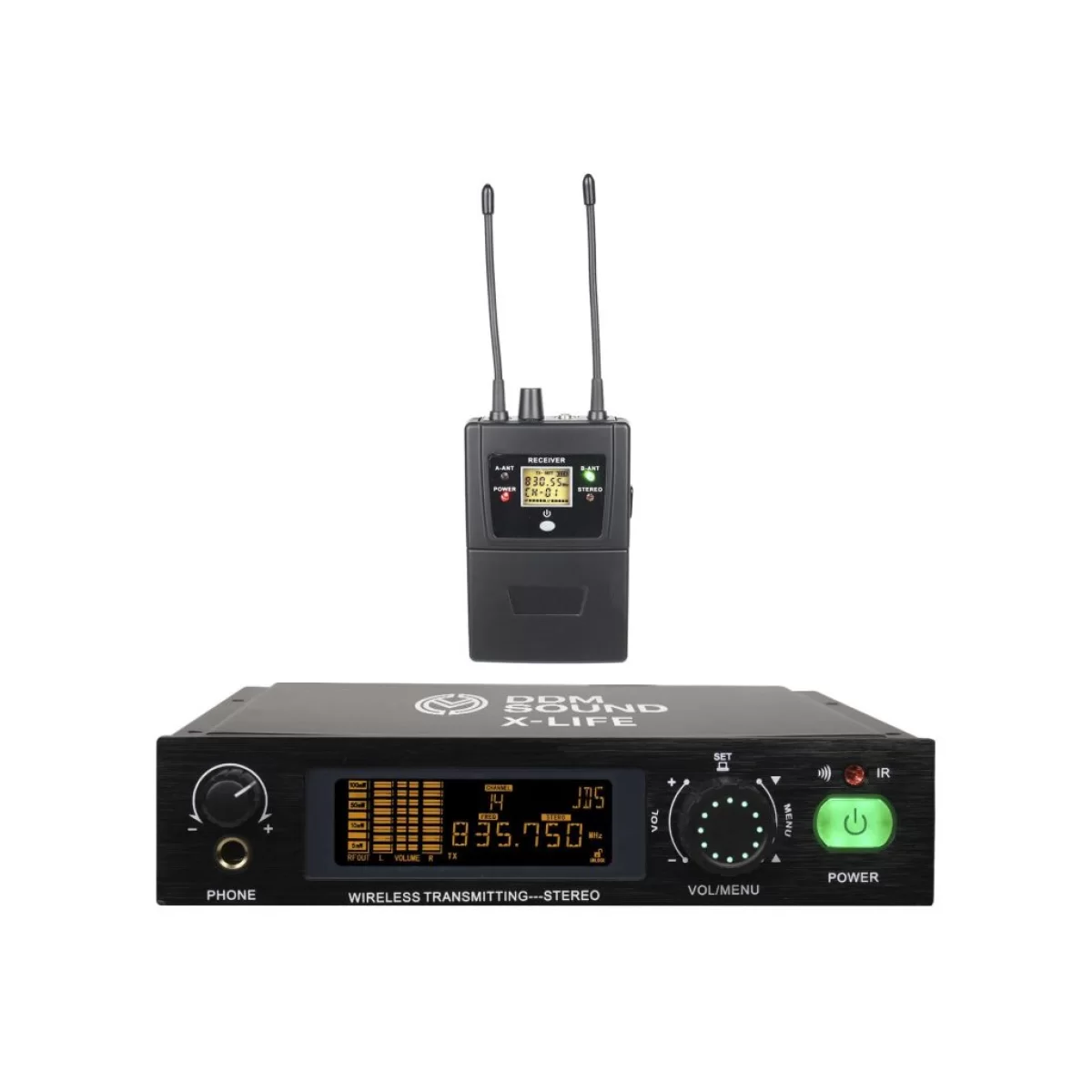 DDM Sound X-LIFE профессиональная беспроводная система персонального мониторинга, в состав которой входят поясной приемник, передатчик и внутриканальные наушники.