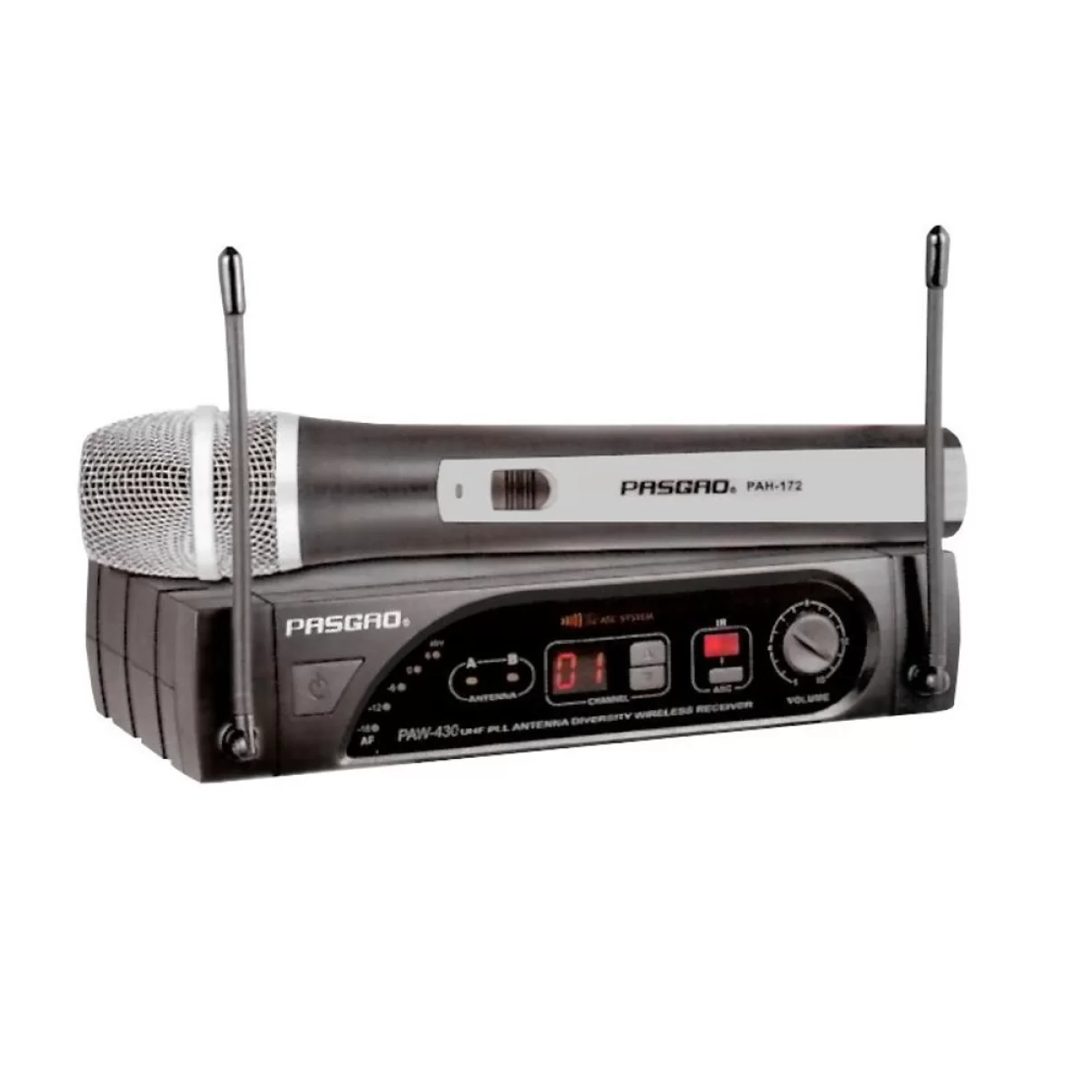 PasgaoPasgao PAW430/PAH172 - Двухантенная Diversity настольная радиосистема UHF-диапазона с ручным передатчиком. Отлично подходит для презентаций и караоке.