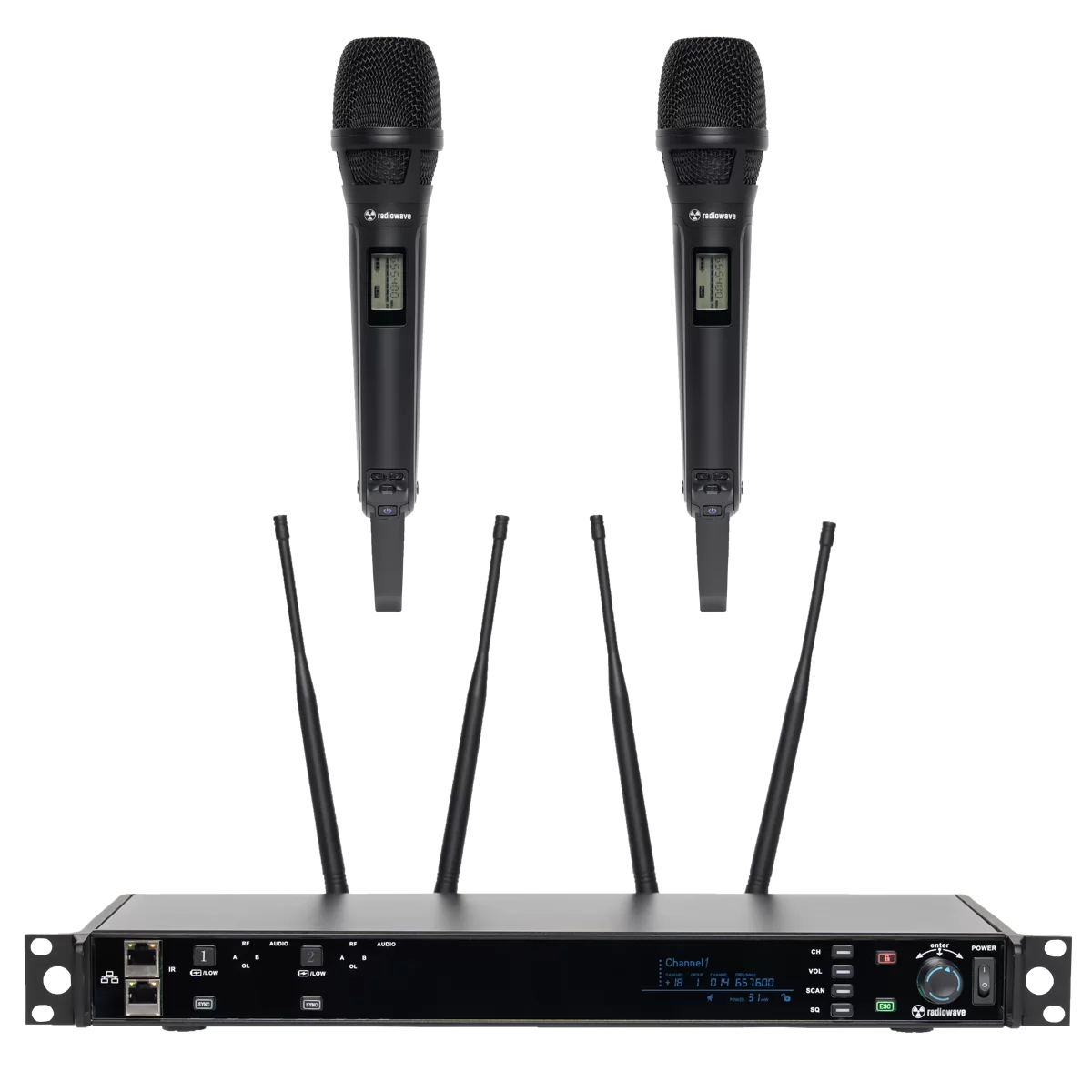 - Тип: рэковая радиосистема с 2 ручными микрофонами и технологией True Diversity и сетевым протоколом LAN