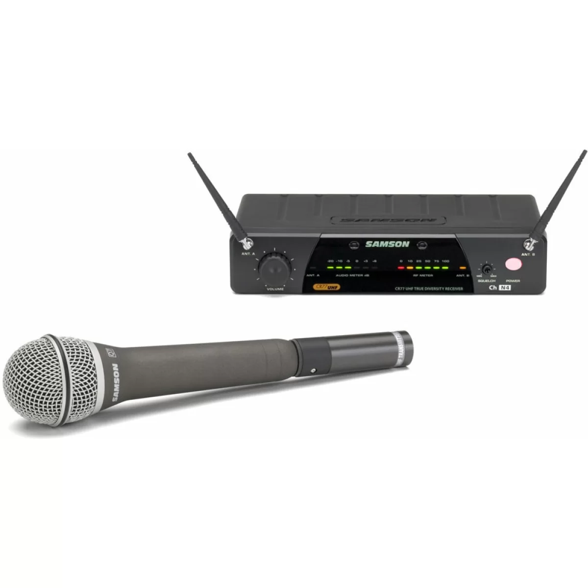 AirLine 77 представляет Вам UHF Guitar System – настоящую беспроводную систему, дающую Вам полную свободу передвижения! Система включает в себя приемник CR77 и портативный передатчик AX1, который подключается к любому стандартному динамическому микрофону вместо обычного провода. В комплект также входит динамический микрофон Samson Q7.