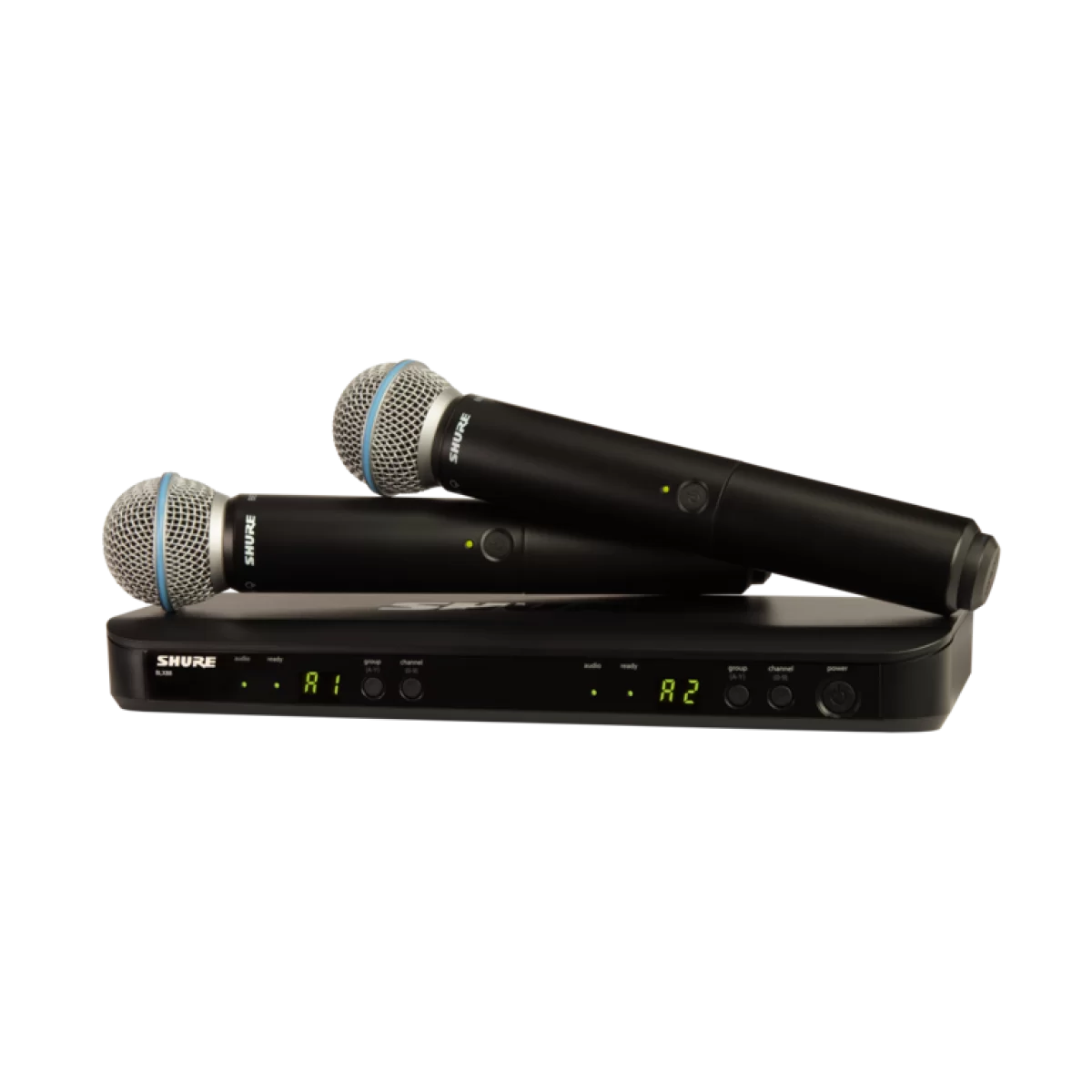 Shure BLX288E/B58 – Беспроводная радиосистема. В комплект входят двухканальный приёмник BLX88 и два передатчика BLX2/B58 с динамическими суперкардиоидными капсюлями от известного микрофона Beta 58A.