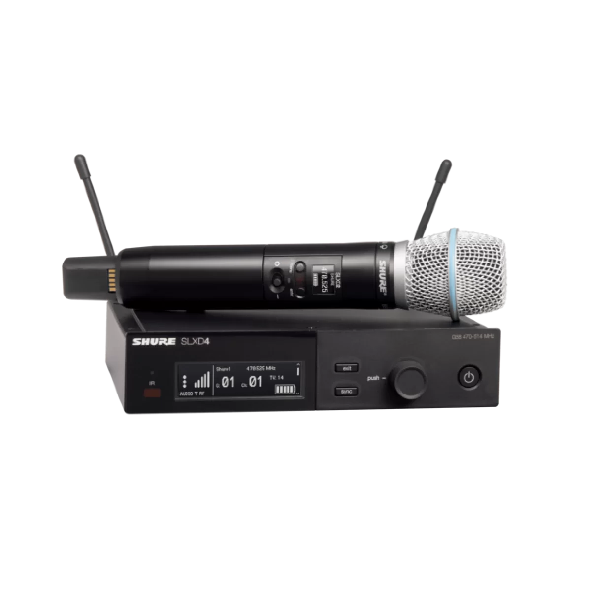 - В наборе приемник SLXD4 и ручной передатчик SLXD2 с конденсаторным микрофонным элементом Beta 87A