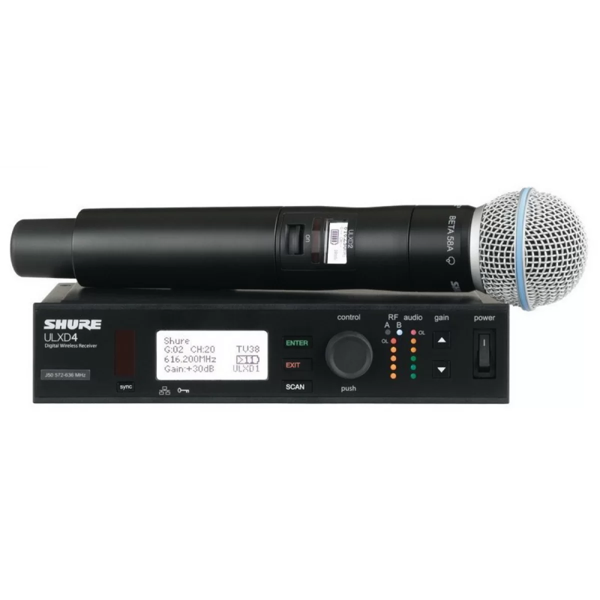 ShureShure ULXD24/BETA58 - Цифровая радиосистема нового поколения, беспроводной 1-канальный комплект для вокального выступления артистов с элементарной инсталляцией, процедурой настройки и эксплуатацией.