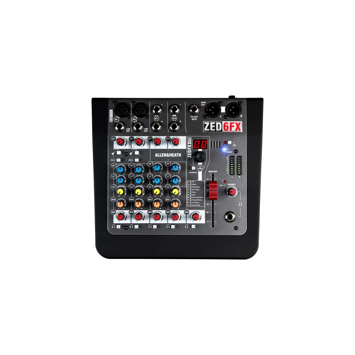 Allen & Heath ZED-6FX – Шестиканальный микшер начального уровня от известного производителя студийного и крнцертного оборудования топового класса, который дополнен встроенным процессором эффектов.