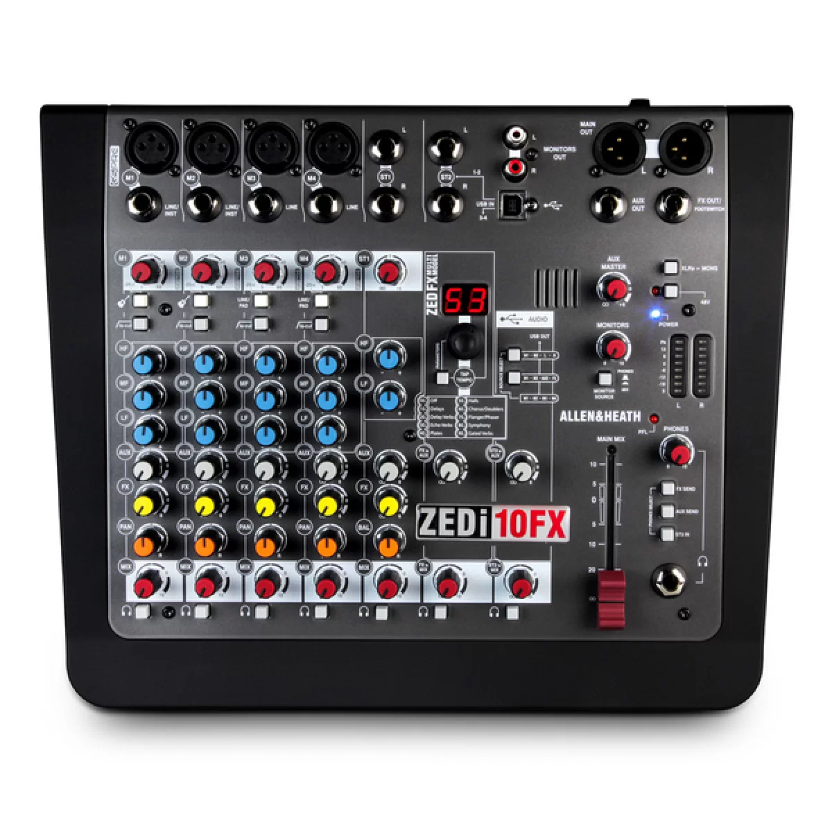 Allen & Heath ZEDi-10FX – Это компактный гибридный аналогово-цифровой десятиканальный микшер начального уровня с USB-интерфейсом 4x4 и собственным процессором эффектов.